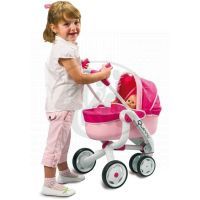 Vhodný pro panenky do 42cm. Stabilní konstrukce s bržděnými koly. Pogumovaná držadla pro pevné uchopení. Balení obsahuje jak pevnou korbičku, tak sportovní (viz obrázky).
