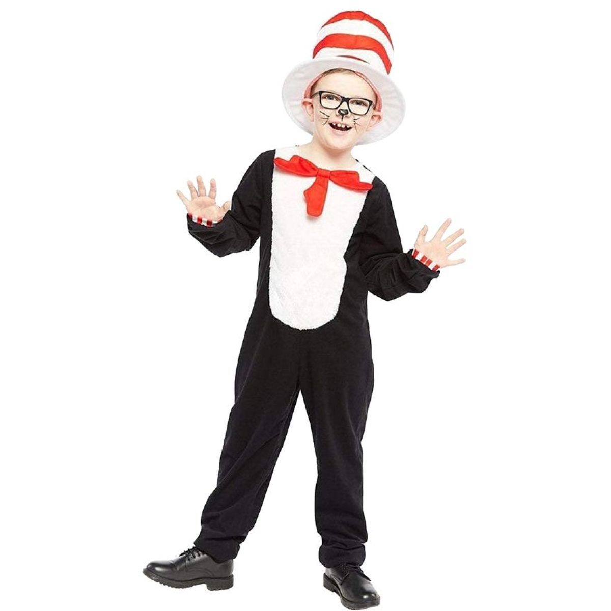 Stylové zakončení rukávů s červenobílými pruhy a výrazný pruhovaný klobouk dodávají kostýmu pohádkový charakter a zajišťují jednotný vzhled celého převleku. Měkké a lehké materiály přispívají k pohodlí při celodenním nošení, ať už na karnevalu, tematické oslavě nebo při dětských hrách doma. Kostým je ideální volbou pro kluky, kteří chtějí být nepřehlédnutelným černým kocourem s veselým nádechem.