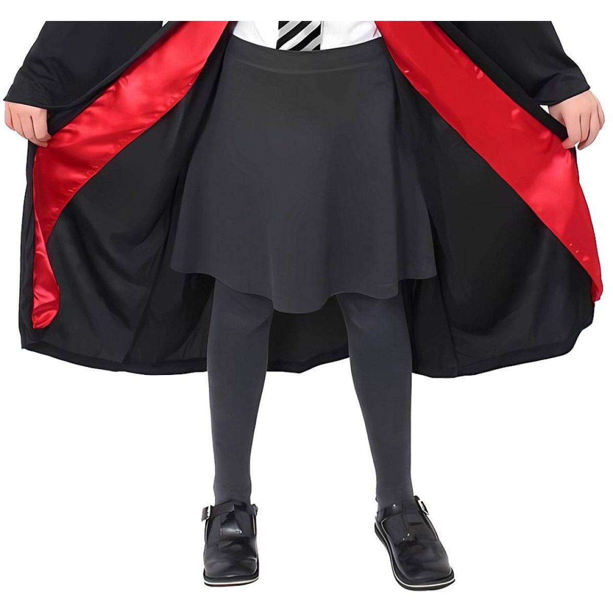 Černý kouzelnický plášť s výraznou červenou podšívkou působí elegantně a magicky zároveň. Díky lehkému materiálu a volnému střihu se pohodlně nosí a umožňuje dětem volný pohyb. Praktické zapínání u krku zajišťuje rychlé oblékání bez zbytečného zdržování.