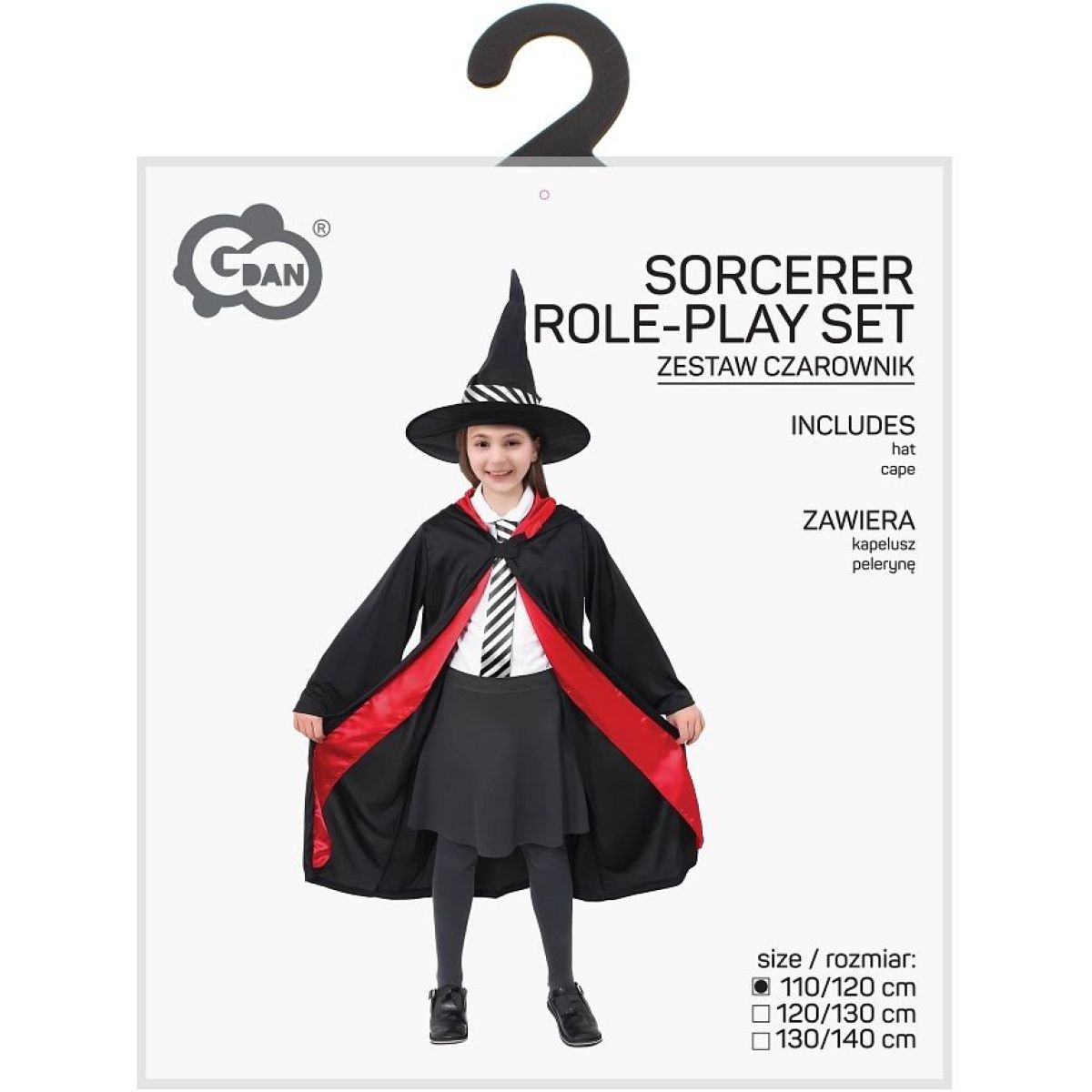 Vysoký špičatý klobouk v černé barvě s černobílým páskem dodává kostýmu klasický kouzelnický vzhled. Univerzální design je vhodný jak pro malé kouzelníky, tak kouzelnice, kteří chtějí okouzlit své okolí a proměnit obyčejný den v magické dobrodružství.