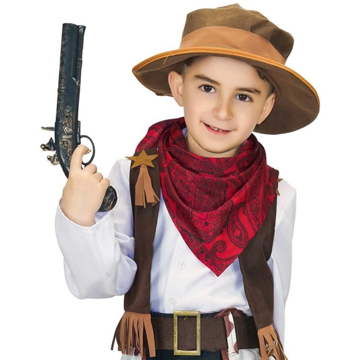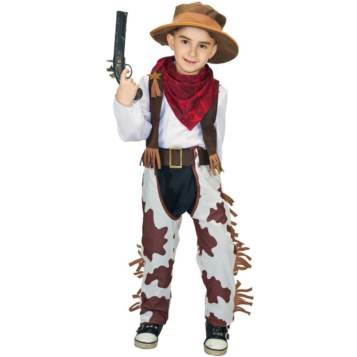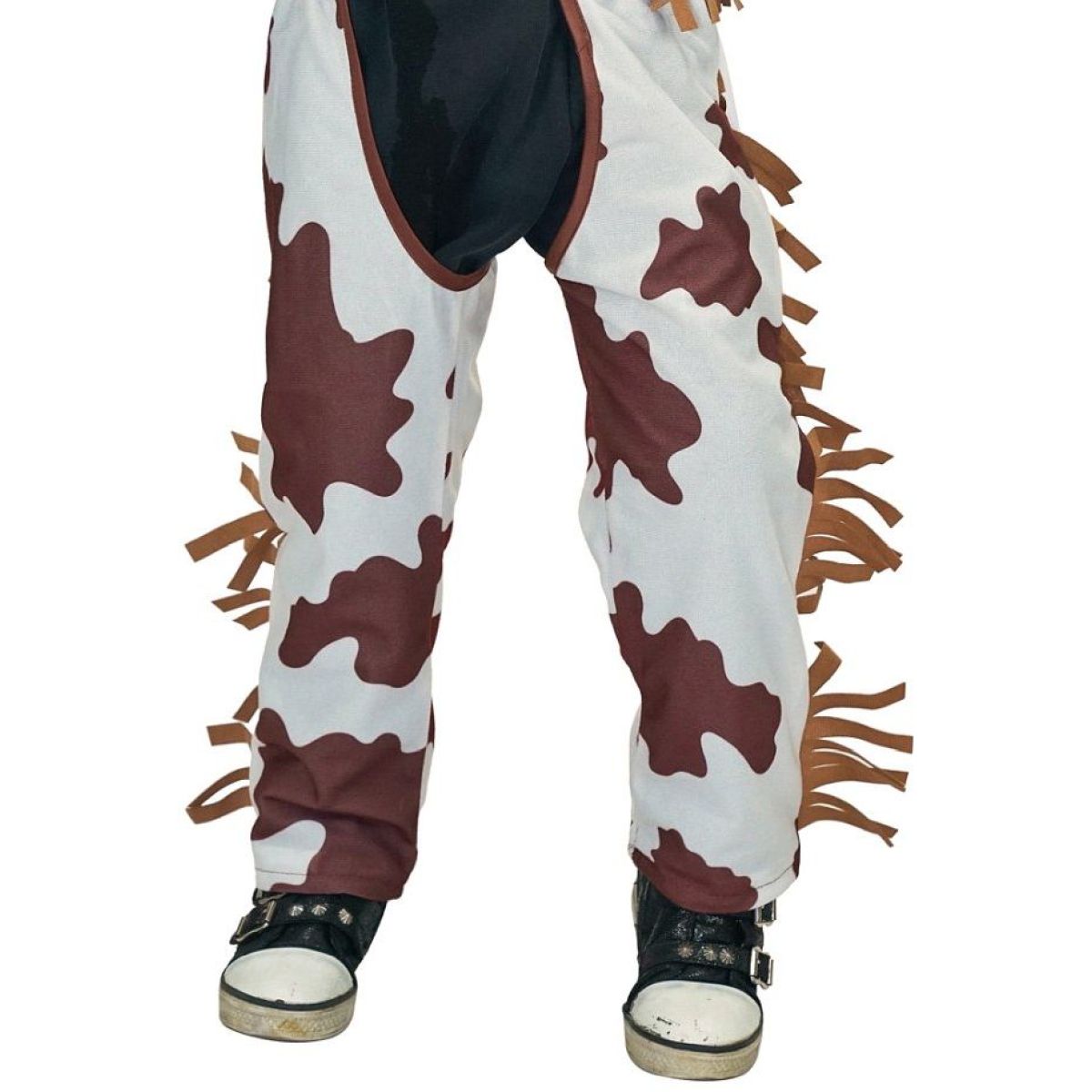 Stylové kalhoty s motivem kravské kůže a třásněmi, tmavá vesta se zlatou hvězdou, kovbojský klobouk, opasek s velkou přezkou a červený šátek vytvářejí kompletní outfit, ve kterém se malý kovboj bude cítit pohodlně i sebevědomě. Kostým je určen dětem od 3 let a podporuje fantazii, kreativitu i radost z pohybu.