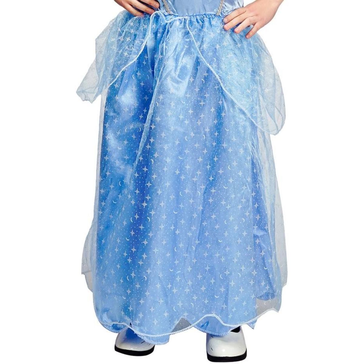 Kostým Ledová princezna 130–140 cm promění malou slečnu v kouzelnou vládkyni zimy, která rozzáří karneval i narozeninovou oslavu. Světle modré dlouhé šaty s jemnými hvězdičkami a měsíci působí jako posypané ledovým třpytem a vytvářejí pohádkový dojem na první pohled.