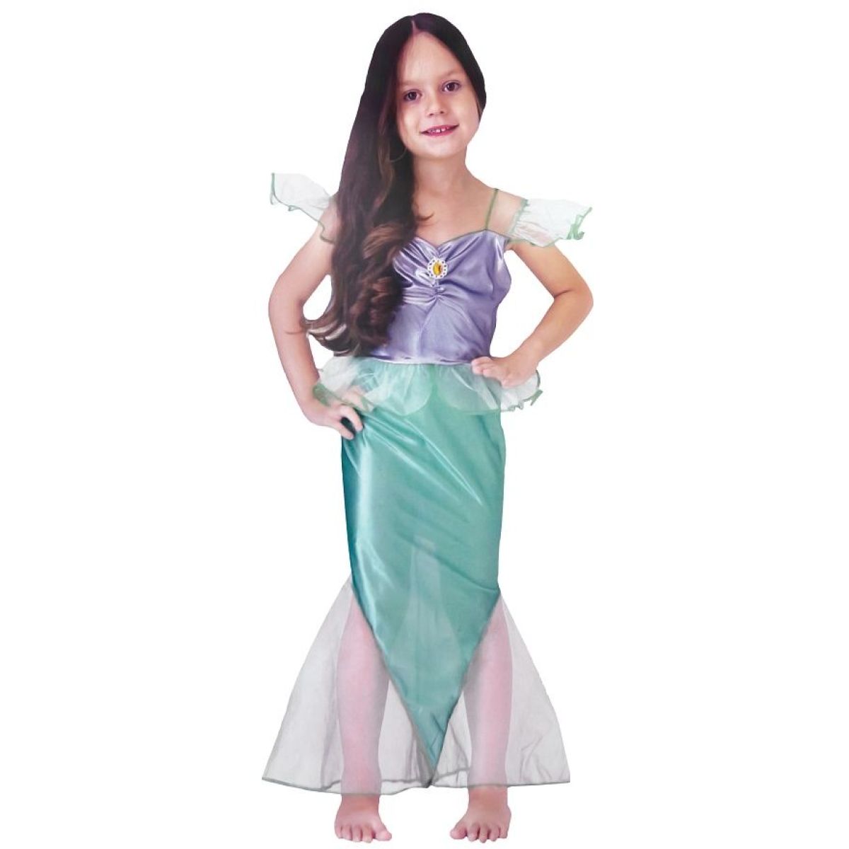 Tenká ramínka s průsvitnými volánky a zeleným lemováním podtrhují něžný vzhled celého kostýmu. Díky lehkým a příjemným materiálům je kostým pohodlný na nošení a vhodný nejen na karnevaly, ale i na tematické oslavy, vystoupení nebo focení. Ideální volba pro děti, které milují pohádkové postavy a podmořskou fantazii.