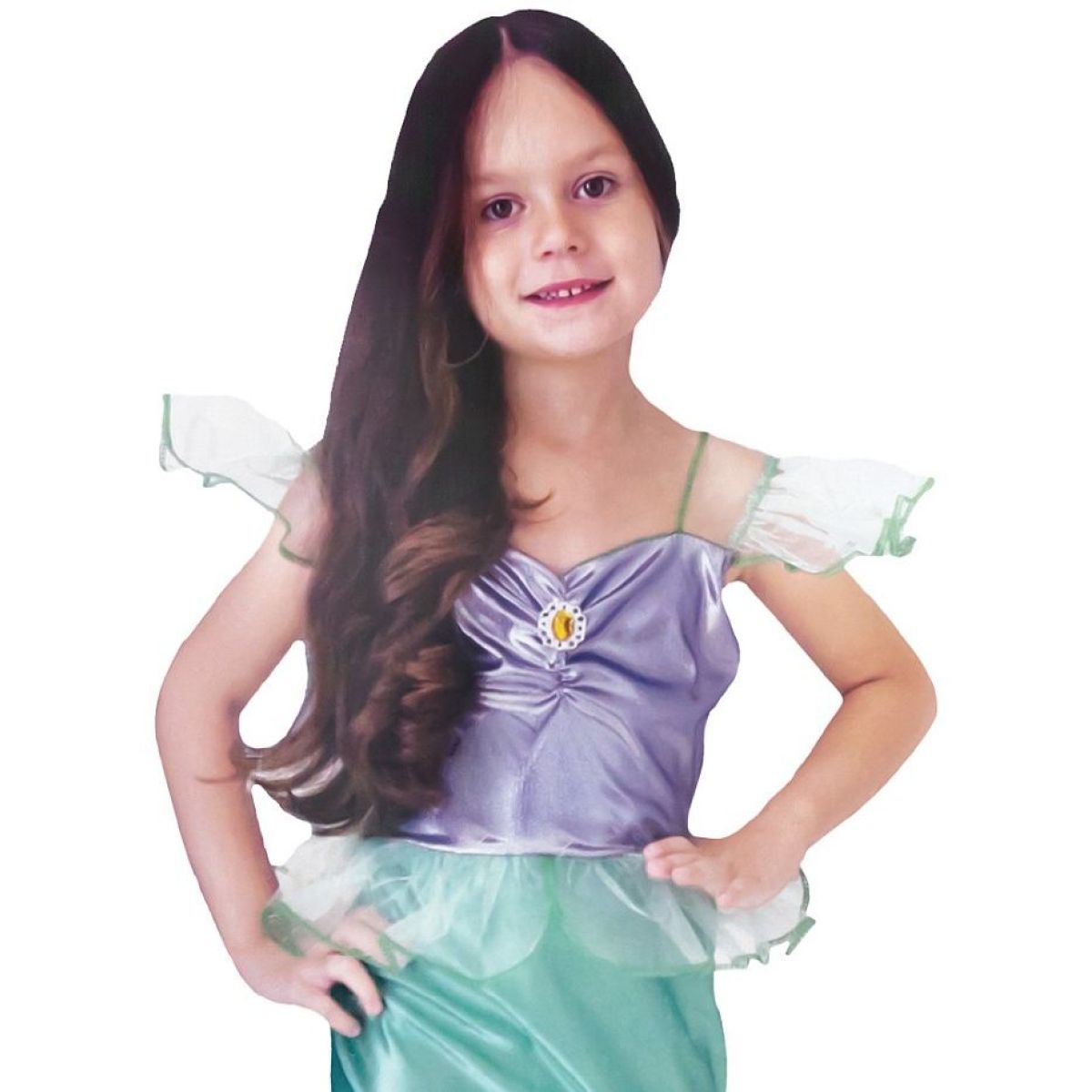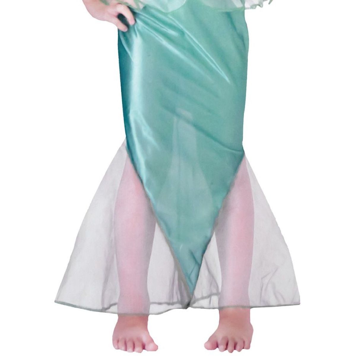 Tenká ramínka s průsvitnými volánky a zeleným lemováním podtrhují něžný vzhled celého kostýmu. Díky lehkým a příjemným materiálům je kostým pohodlný na nošení a vhodný nejen na karnevaly, ale i na tematické oslavy, vystoupení nebo focení. Ideální volba pro děti, které milují pohádkové postavy a podmořskou fantazii.