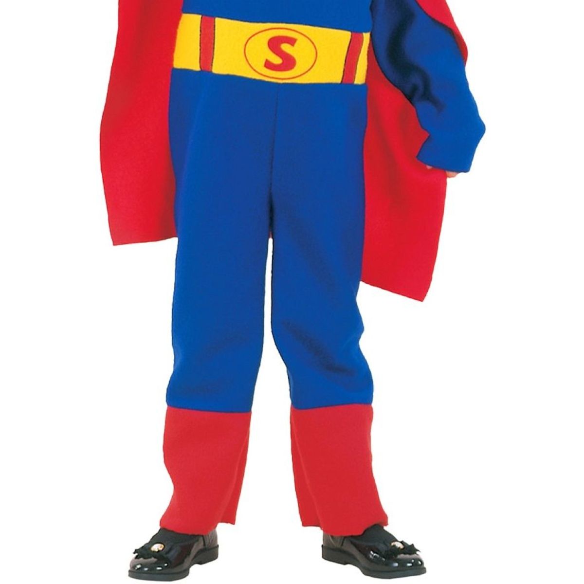 Žlutý opasek s červeným písmenem „S“ podtrhuje celkový design a přidává kostýmu ikonický detail. Měkký a pružný materiál zajišťuje pohodlí při nošení a volnost pohybu během her, běhání i tance. Kostým je ideální volbou pro karnevaly, tematické oslavy nebo domácí hraní, při kterém se děti mohou naplno vžít do role superhrdiny.
