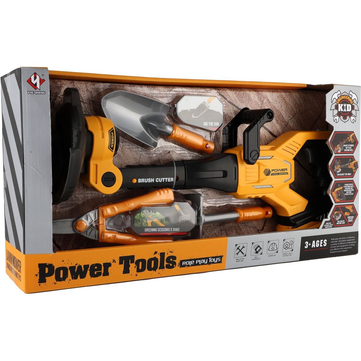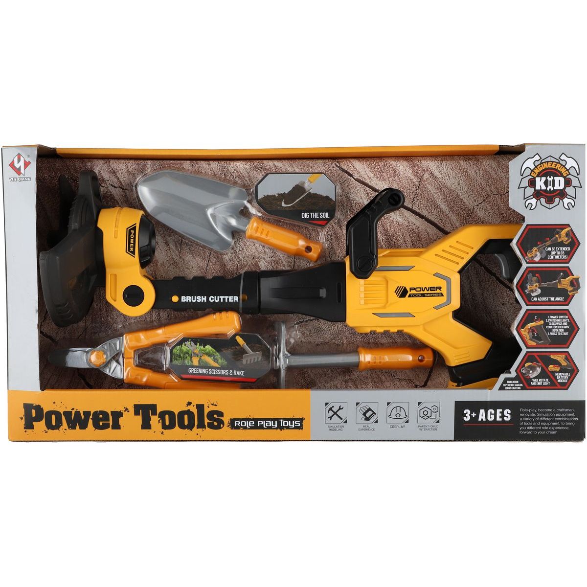 S tímhle parádním křovinořezem bude každá zahrada dokonale upravená! Zvukové efekty, dvě délkové polohy, nastavitelný sklon sekání a hromada doplňků – hrábě, lopatka i nůžky – dělají z této sady skvělou výbavu pro všechny malé kutily. Lehký, odolný a kompatibilní s dalšími nástroji ze série. Baterie 3x AAA nejsou součástí balení. Velikost nářadí: 52 cm. Rozměr balení: 56 x 29 x 13,5 cm.