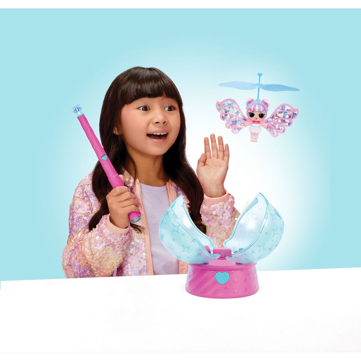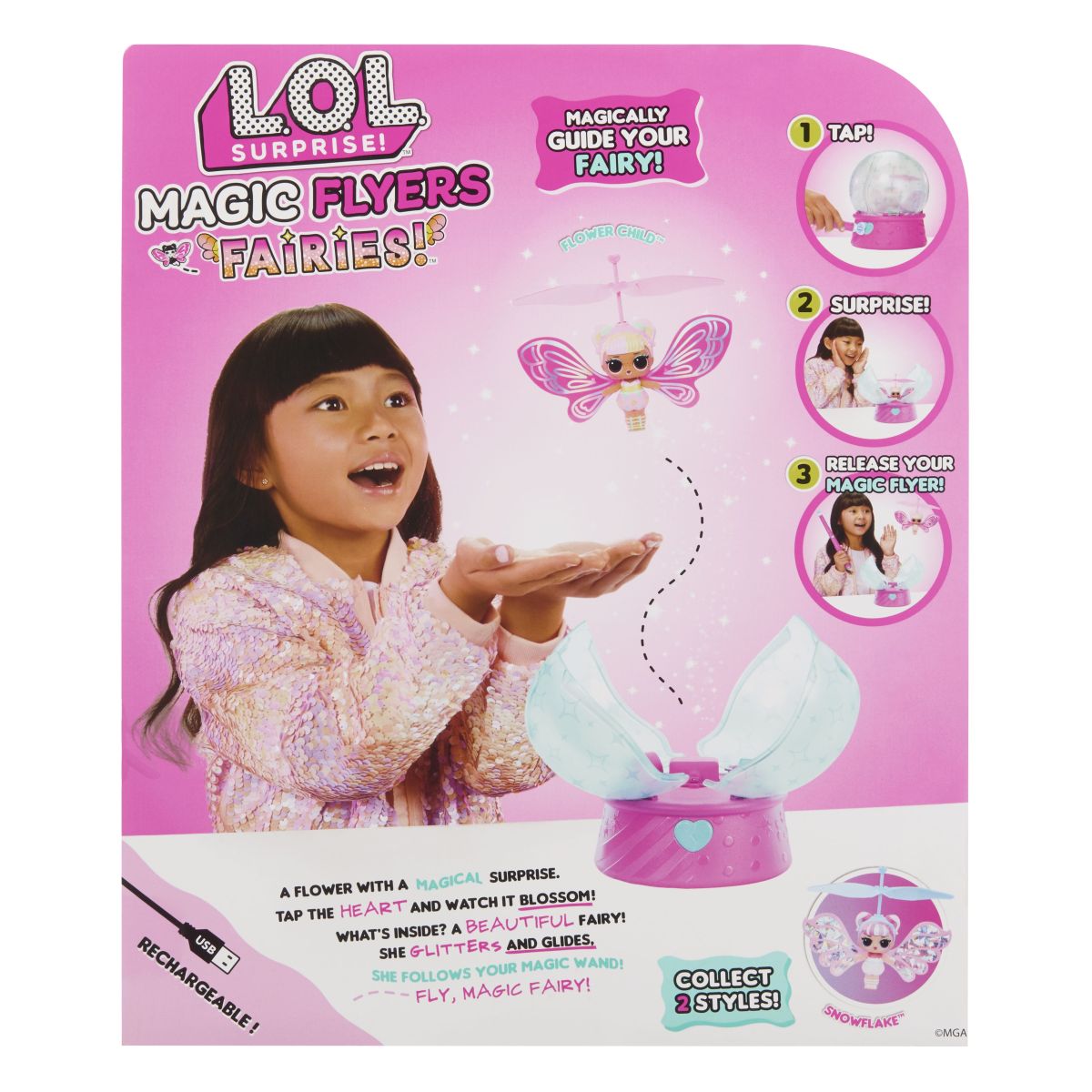 Poznej kouzlo L.O.L. Surprise! Kouzelné létající víly Flower Child, která tě okouzlí svými jiskřivými křídly a hravým ovládáním letu. Stačí lehce poklepat na srdce květiny a víla se vznesete nad zem, kde ji můžeš řídit rukou nebo speciální hůlkou z balení. Panenka má cca 8 cm a přichází v krásném obalu ve tvaru květiny spolu s Micro USB kabelem pro snadné dobíjení baterií – žádná starost o výměnu! Připrav se na nekonečnou zábavu plnou fantazie.