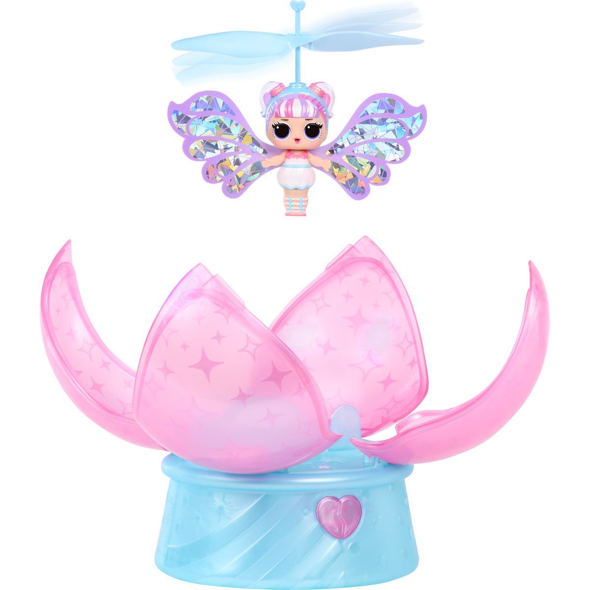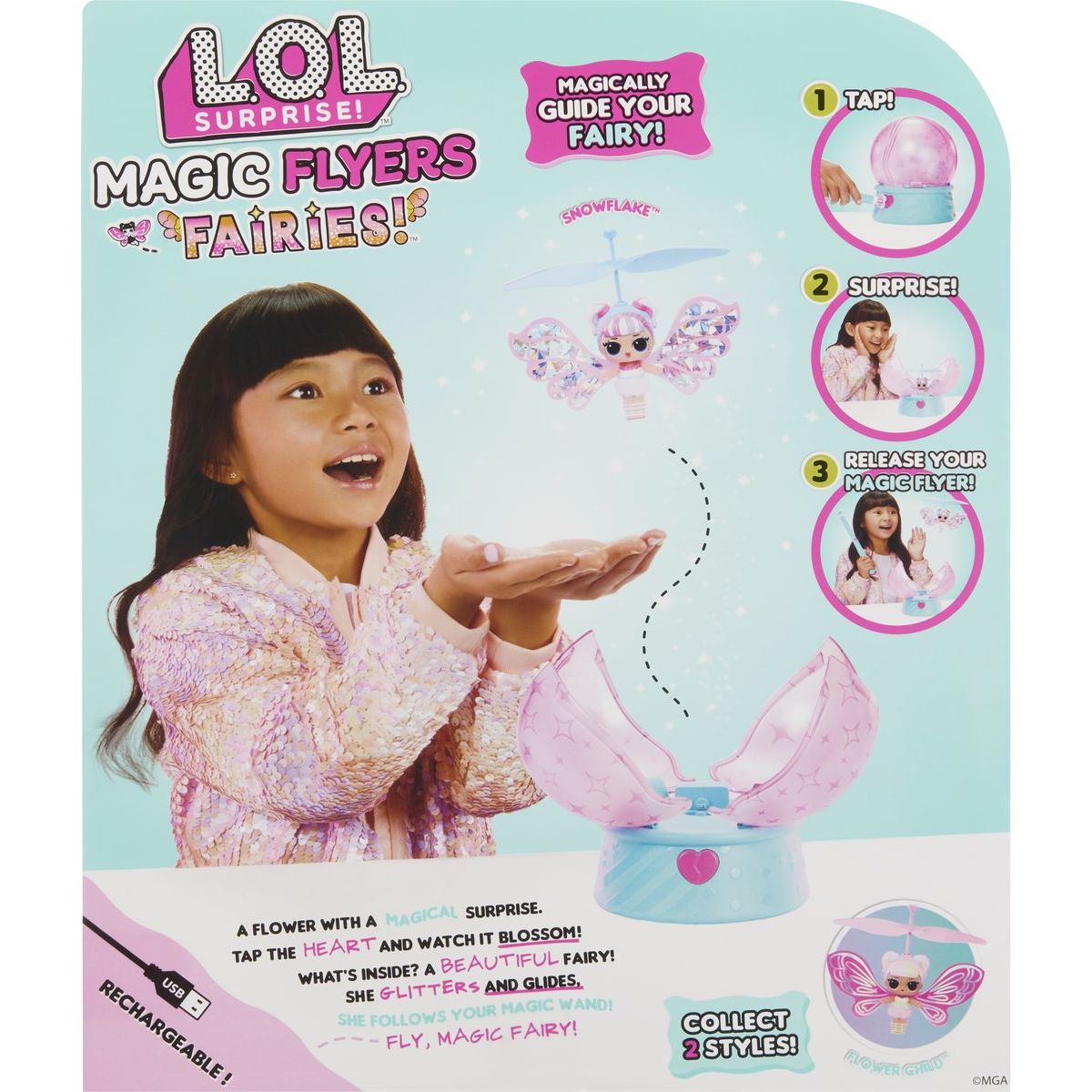 Poznej kouzlo létající víly Snowflake z kolekce L.O.L. Surprise! Tato malá víla se třpytivými křídly dokáže vzlétnout po poklepání na srdce květiny v jejím krásném obalu ve tvaru květu. Vílu můžeš řídit rukou nebo pomocí kouzelné hůlky a užít si tak spoustu zábavy! Součástí balení je také Micro USB kabel pro nabití Li-Po baterie – víla tak může létat znova a znova. Velikost panenky je asi 8 cm a hračka je vhodná pro děti od čtyř let.
