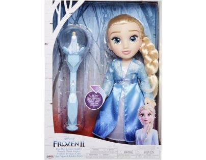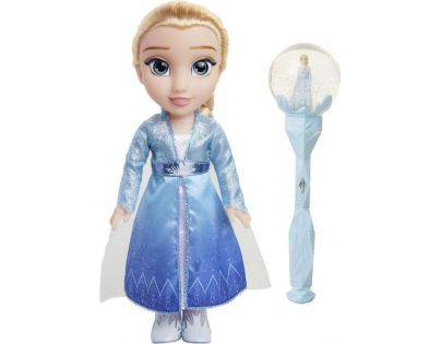Princezna Elsa je oblečena do dlouhých modrých šatů se závojem a blond vlasy má spleteny do hustého copu. Společně s panenkou najdou holčičky v balení i hudební hůlku, vyrobenou také podle námětu filmu Ledové království II. Ta může tentokrát hrát píseň, kterou znají holčičky z pohádky. Při pohybu sněžítko rozptýlí třpytivé sněhové vločky, které dopadají na princeznu uprostřed koule.