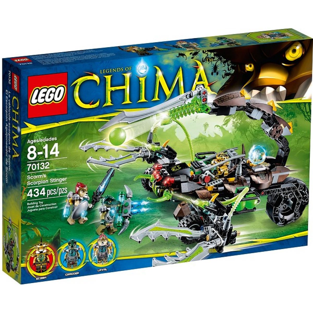Scorm, král Škorpionů, ukradl dost velké množství energie CHI a ostatní kmeny jsou rozhodnuté ji na něm vydobýt nazpět. To ale v první řadě znamená vyhnout se obrovitým jedovatým klepetům a kusadlům Scormova trojkolového vozidla Scorpion Stinger. Pomoz vyzbrojeným kmenovým válečníkům Craggerovi a Lavalovi , kteří útočí s pomocí trhače krunýřů Scale Ripper a temného meče Shado Valious, a společně uhýbejte před stříkanci jedu, které po vás Scorm vystřeluje. Dávejte si velký pozor na ohebný ocas Stingeru opatřený žihadlem, kterým po vás může kdykoli šlehnout - ať úspěšně vyváznete i s energií CHI! Sada obsahuje 3 minifigurky s různými zbraněmi a výstrojí: Scorma, a dále Lavala a Craggera vybavené jejich novou výzbrojí.