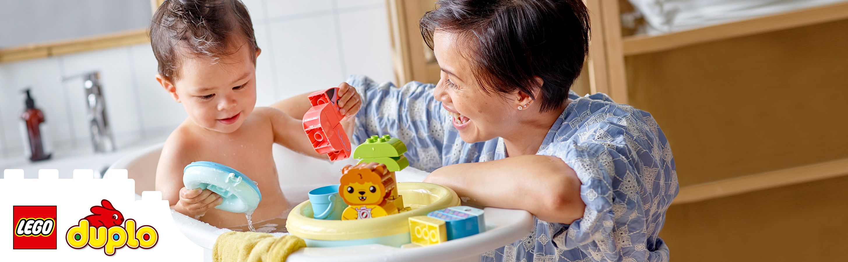 Tato sada se snadno kombinuje, a to skrze zaoblený háček, se sadami Legrace ve vaně: Plovoucí vláček se zvířátky 10965 a nebo Legrace ve vaně: Plovoucí panda červená 10964, prodávaných samostatně.