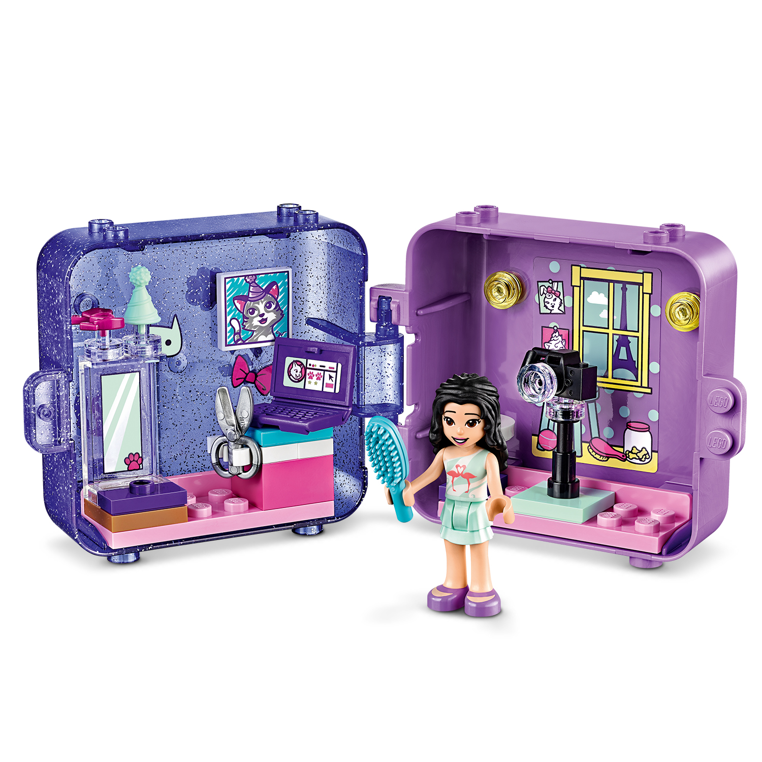 Dvoubarevný boxík ukrývá malou Emmu, která se chystá k fotografování ve svém pařížském ateliéru. K dispozici má foťák i notebook, také zrcadlo a příslušenství pro úpravu vizáže. Stačí otevřít boxík a objeví se hrací prostor, rozdělený na dvě části. Hracích boxů je vyrobeno více druhů, vzájemně jsou stohovatelné.