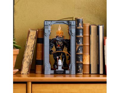 Tento působivý kousek není jen praktickou knižní zarážkou, ale také oknem do jedné z nejslavnějších fantasy scén všech dob – souboje Gandalfa a Balroga v hlubinách Morie.