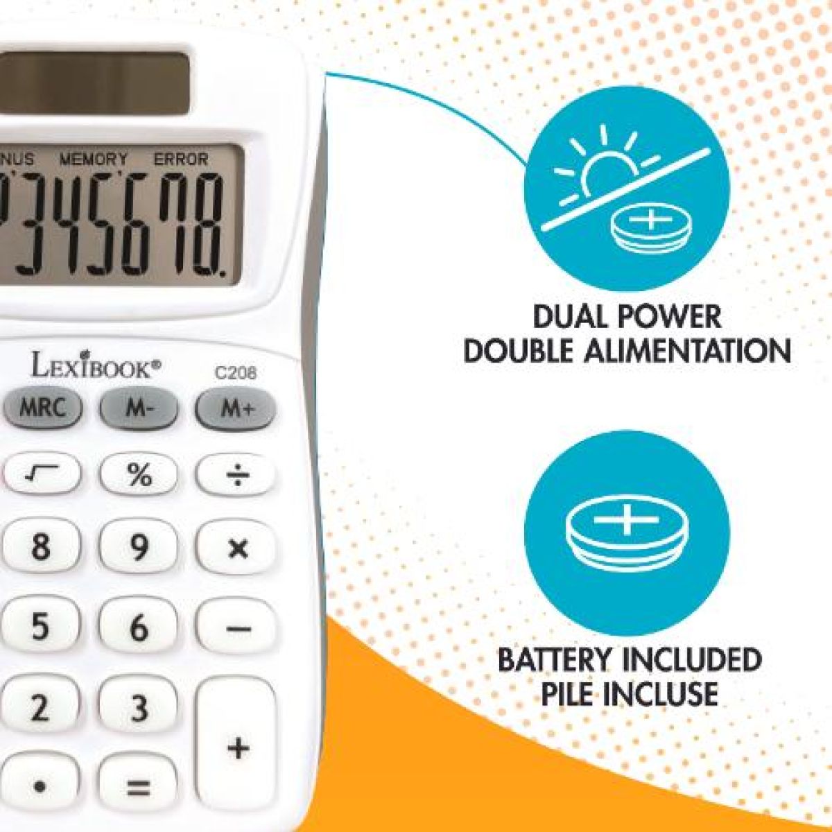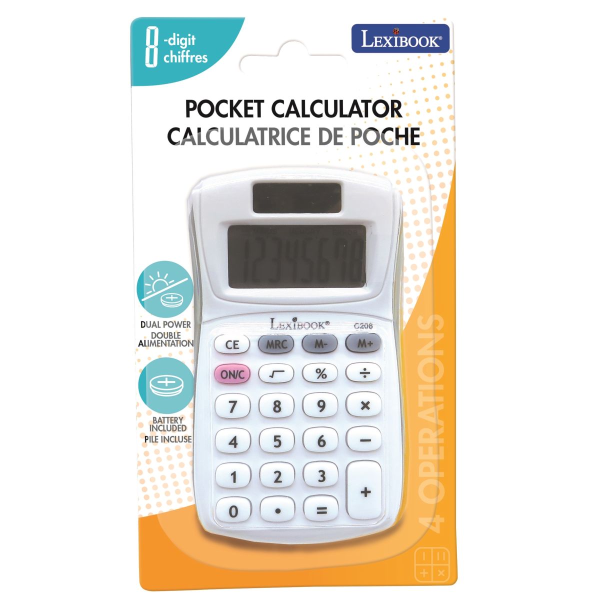 Díky solárnímu napájení a přibalené baterii LR54 vždy pomůže s rychlými výpočty při hře i ve škole. Odolné provedení a bezpečný design jsou přizpůsobeny dětem, aby si mohly počítání užít bez starostí.