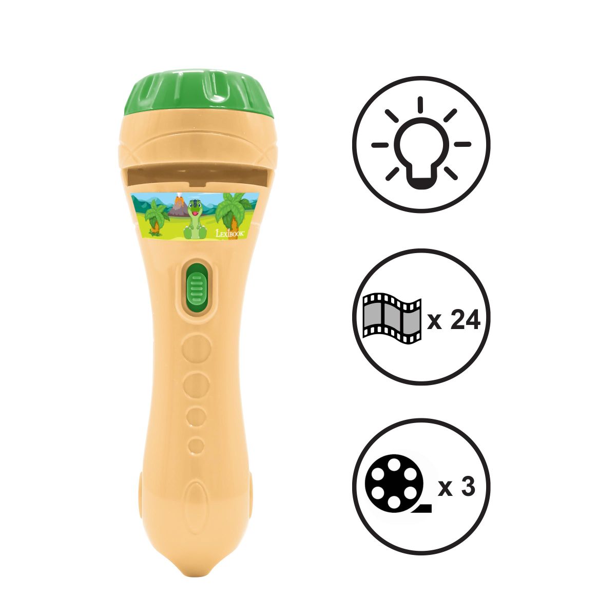Lexibook dětská baterka s projektorem příběhů a figurkami Dinosaurus přenese děti do fascinujícího světa pravěku. Promítání barevných obrázků spolu s figurkami dinosaurů vytváří zábavné prostředí pro vlastní dobrodružné příběhy.
