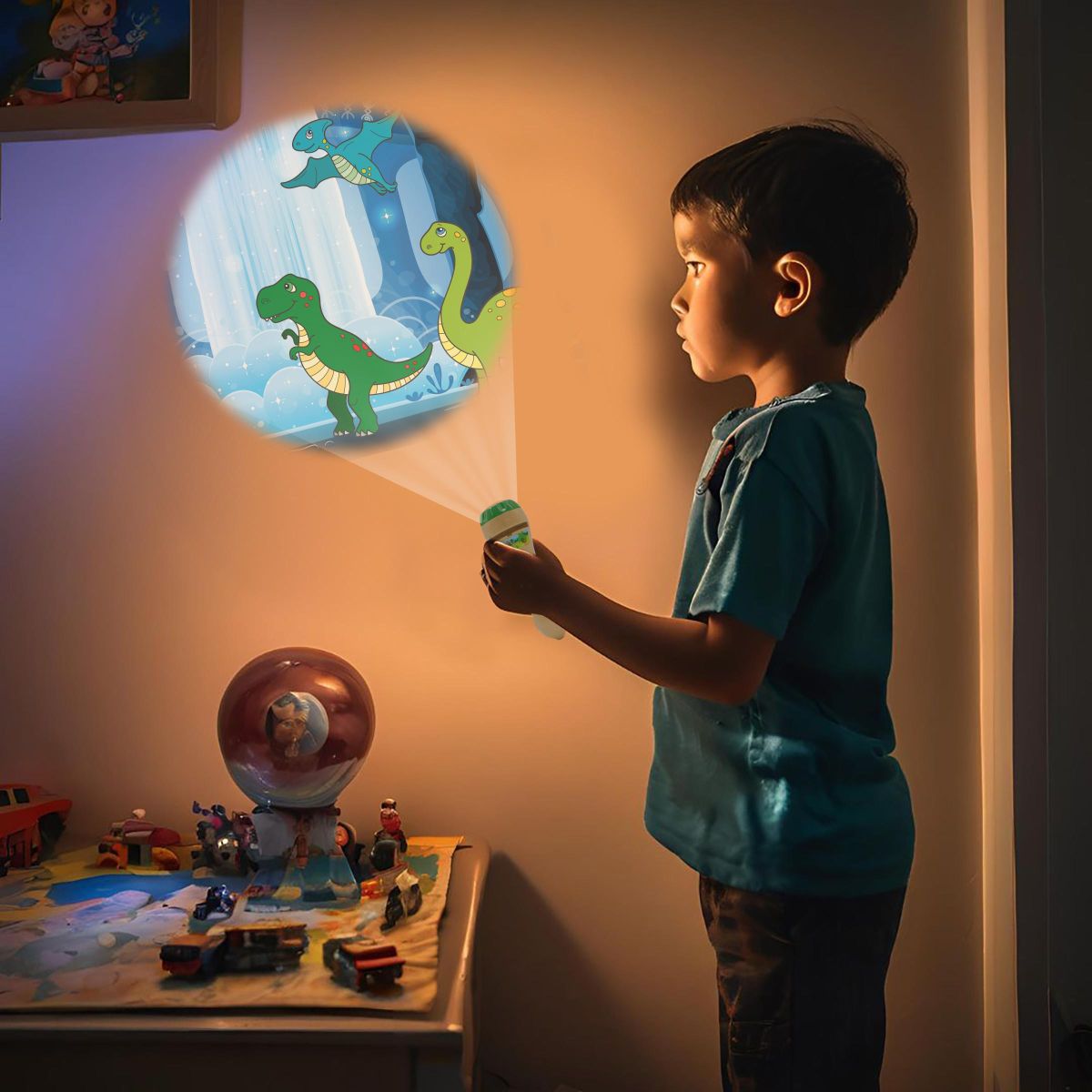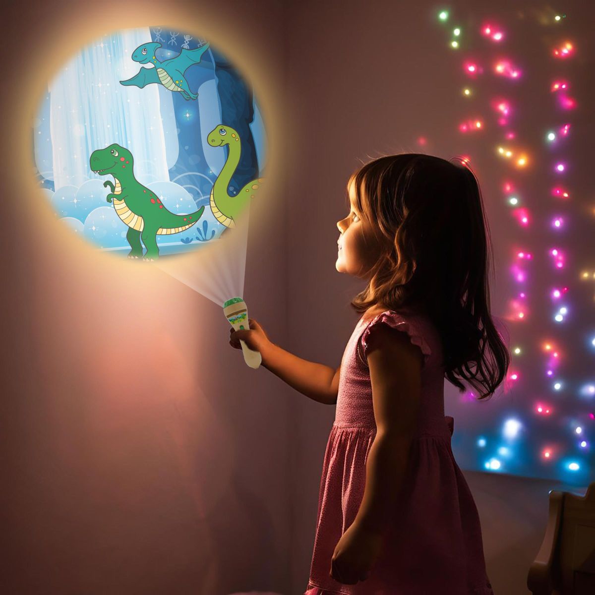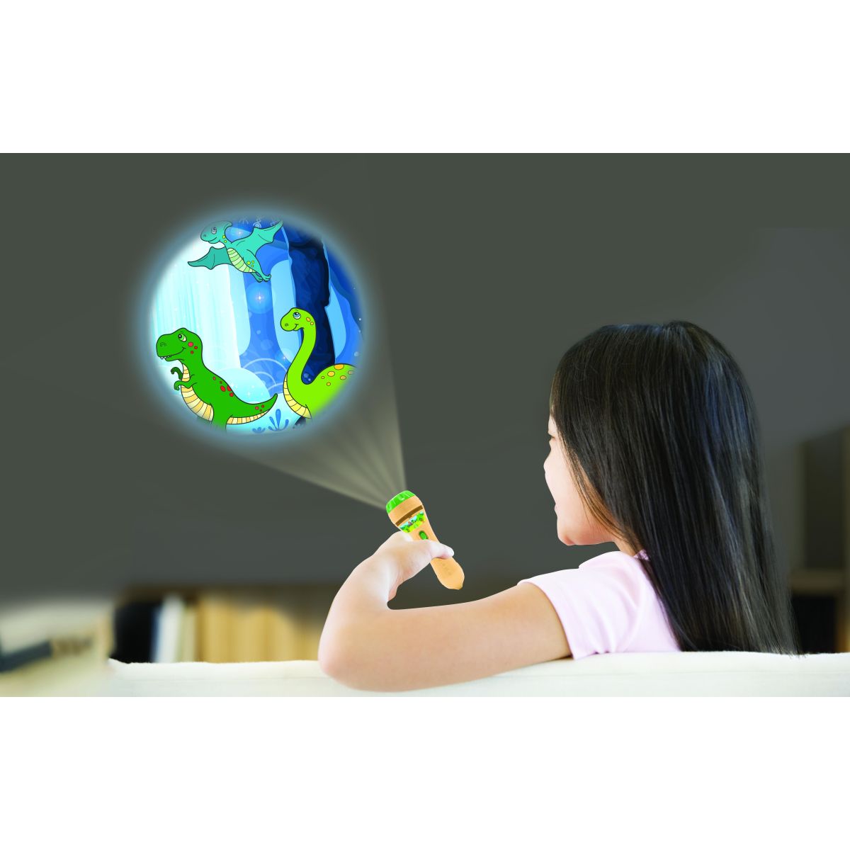 Díky výměnným kotoučům mohou děti snadno měnit scény a zapojit fantazii naplno. Praktická baterka s jednoduchým ovládáním je ideální pro večerní hraní i vyprávění před spaním, a díky kompaktnímu provedení ji lze vzít kamkoliv s sebou.