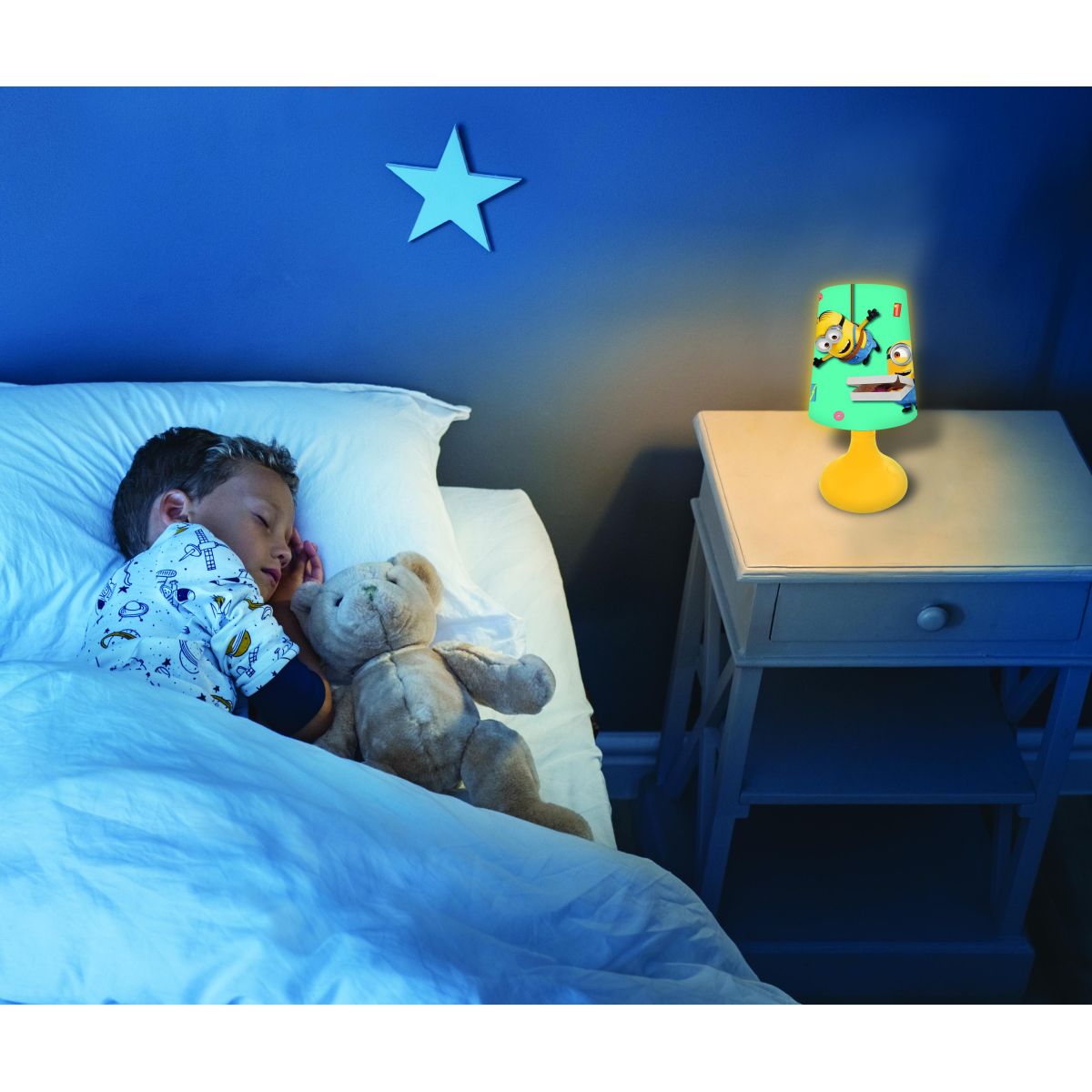 Díky bezdrátovému napájení ji můžete snadno přesunout kamkoliv a její roztomilý design zaujme všechny malé fanoušky Mimonů. Skvělý společník na večerní čtení nebo tiché chvíle před usnutím.