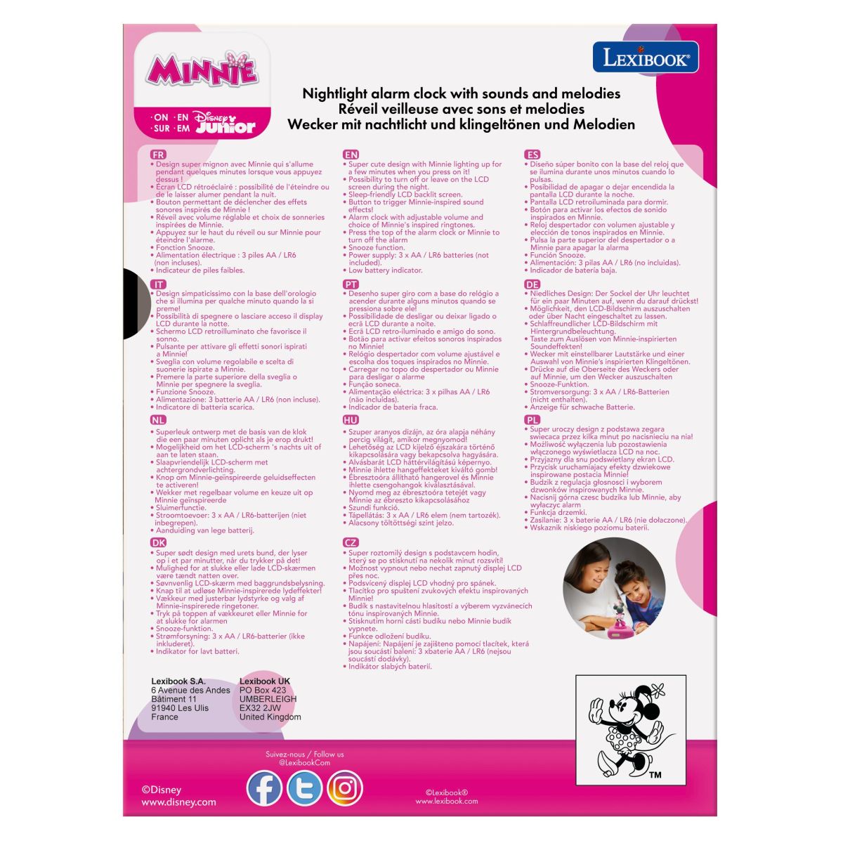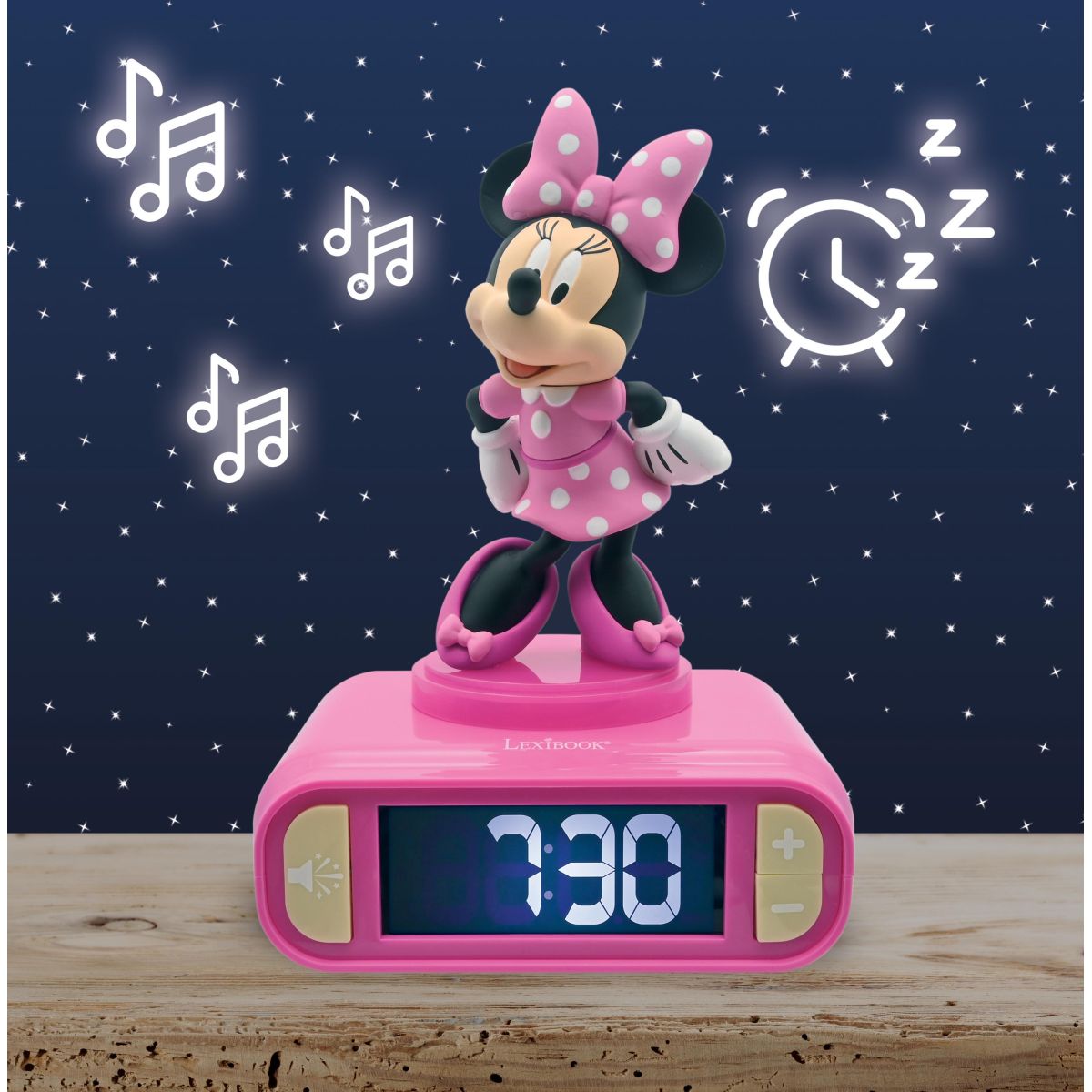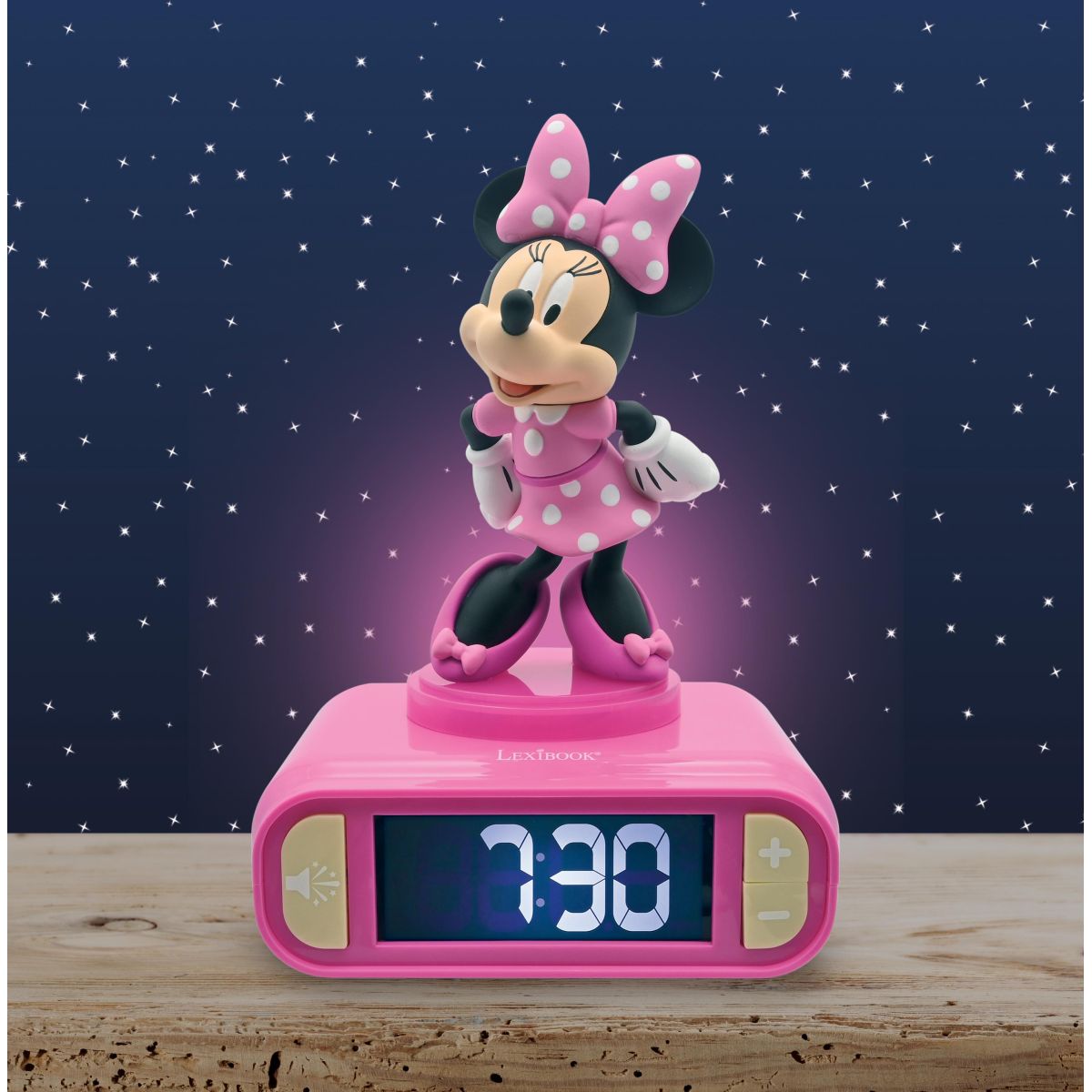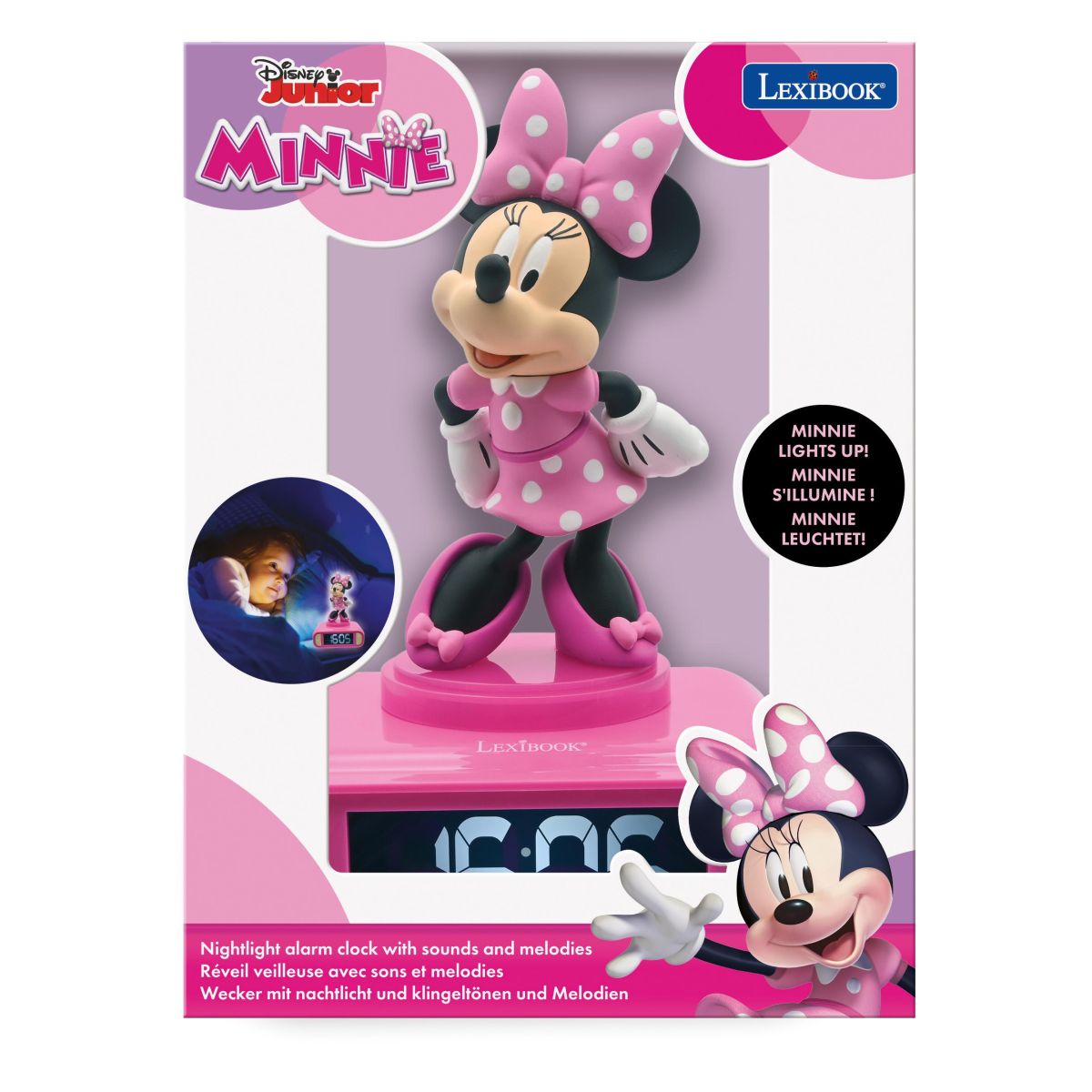 Budík Lexibook Minnie se svítící figurkou přináší radostné probuzení i do dětských pokojů. Díky jednoduchému ovládání a jasnému displeji je vhodný již pro děti od 4 let.