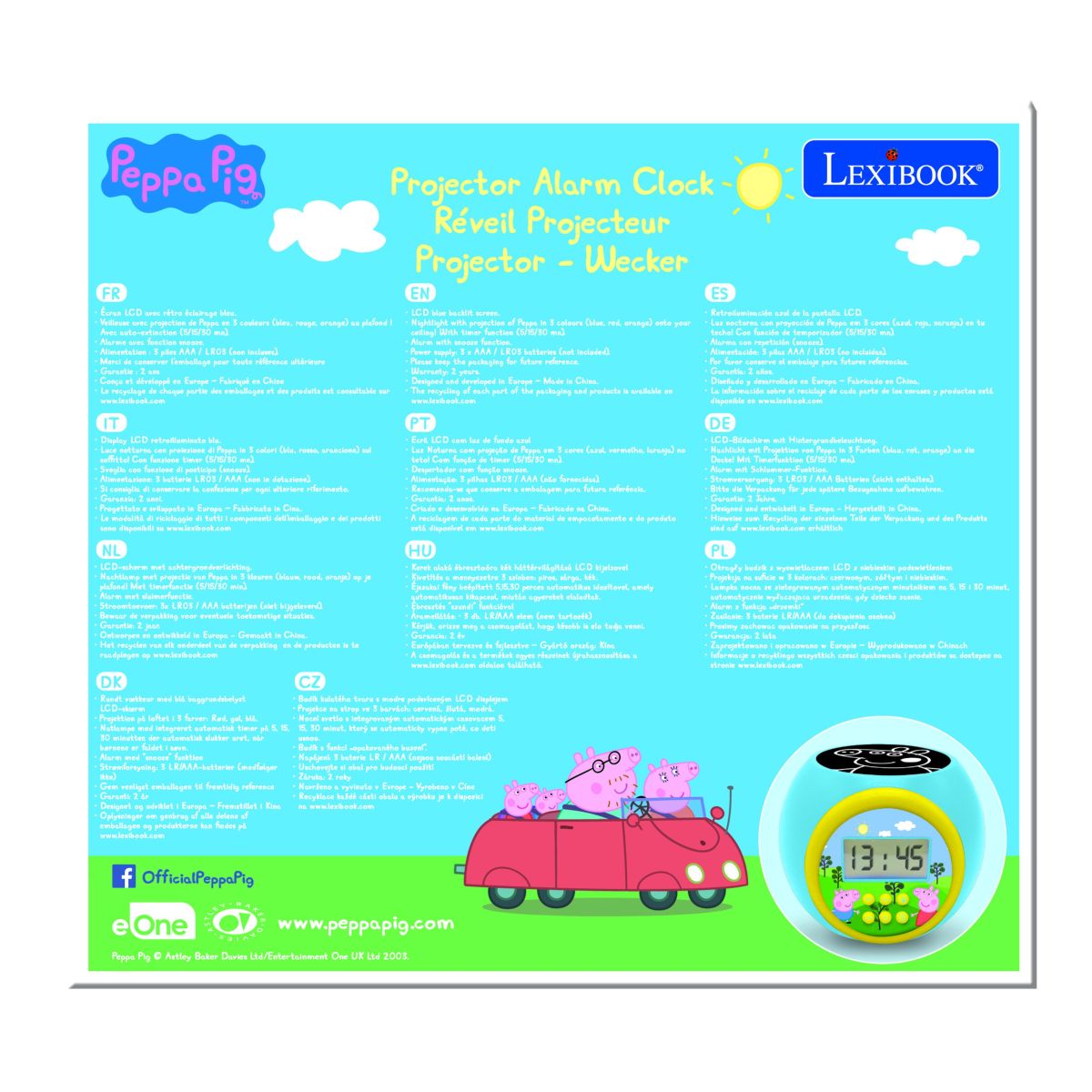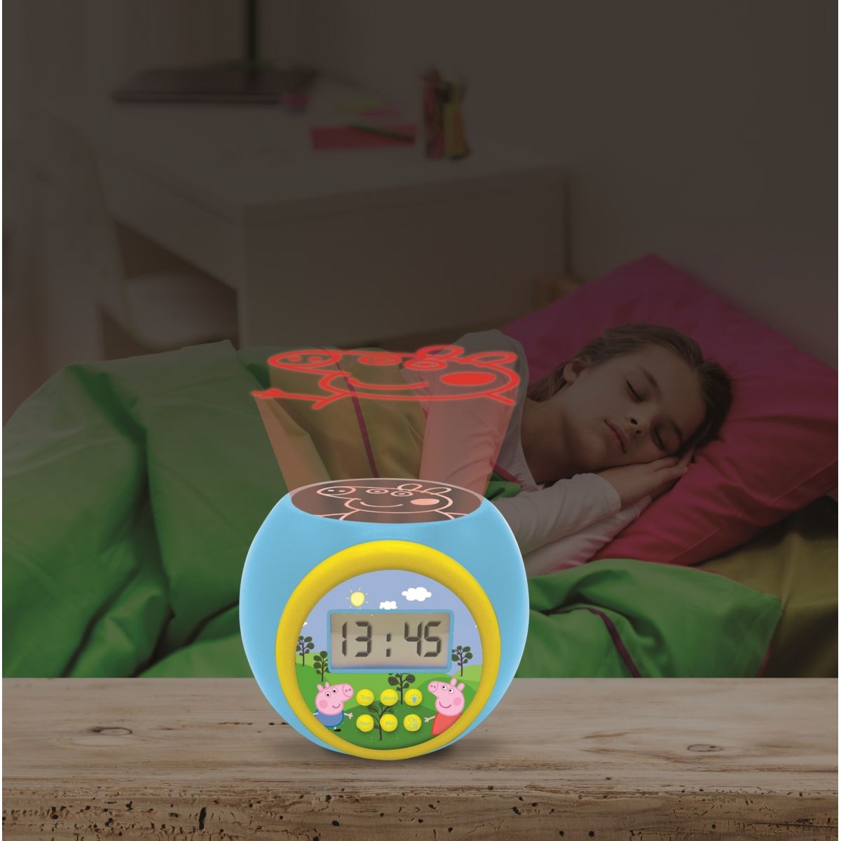 Ranní vstávání může být hračka s budíkem Lexibook Prasátko Peppa se stropním projektorem. Díky přehlednému displeji a jednoduchému ovládání si děti snadno nastaví čas samy.