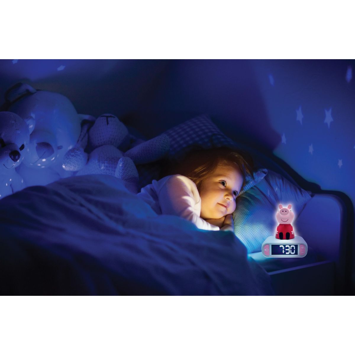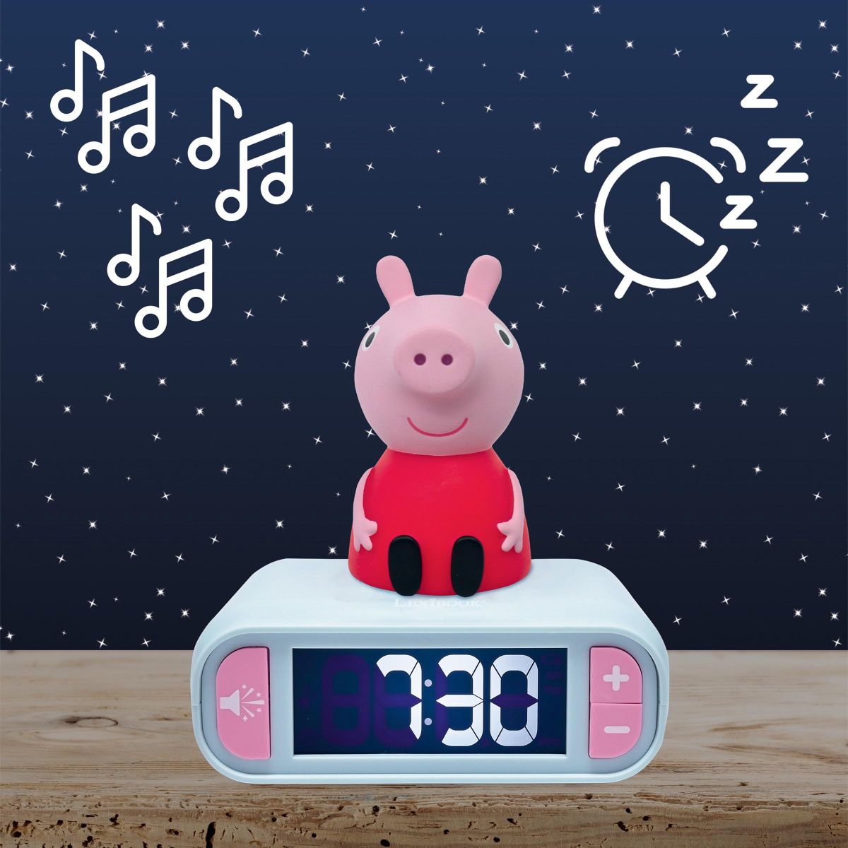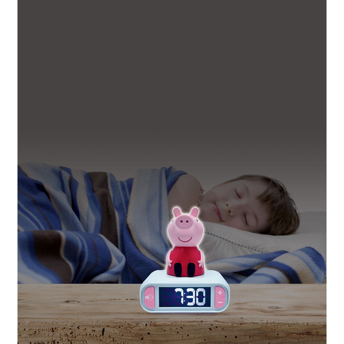 Budík je pevný a odolný, takže vydrží každodenní používání v dětském pokoji. A když se rozsvítí Peppa, rázem je všude veselo!