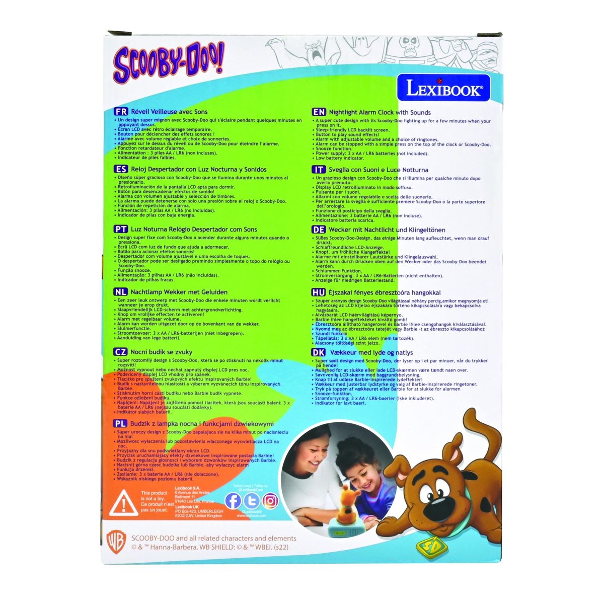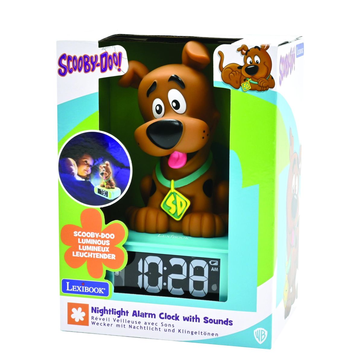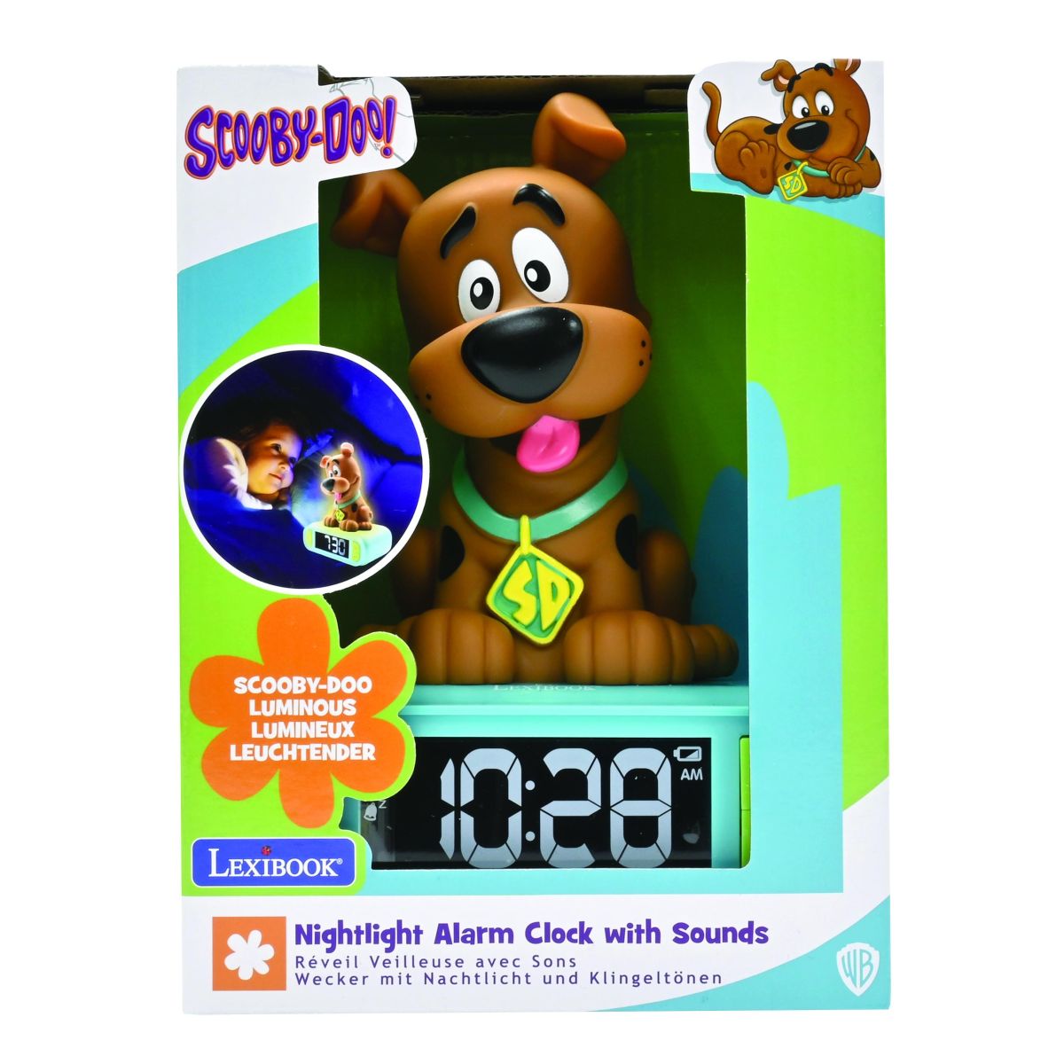 Lexibook budík Scooby Doo se svítící figurkou promění každé ráno v radostný start do nového dne. Díky přehlednému displeji a jednoduchému ovládání ho děti snadno zvládnou používat samy.