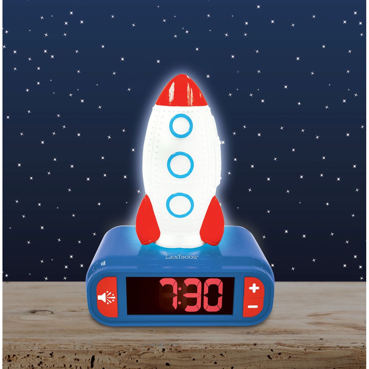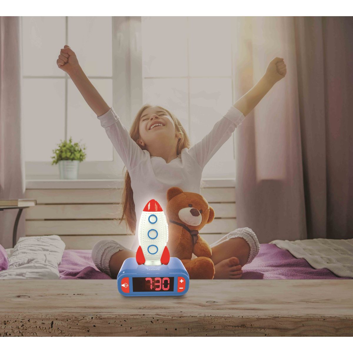 Lexibook budík se svítící raketou udělá z ranního vstávání příjemný zážitek. Díky jednoduchému ovládání a jasnému displeji ho děti snadno zvládnou používat samy.