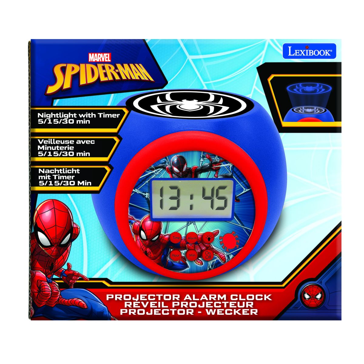 Ranní vstávání může být radostné s budíkem Lexibook Spiderman se stropním projektorem! Děti ocení přehledný displej a jednoduché ovládání, díky kterým je používání hračkou i pro malé uživatele.