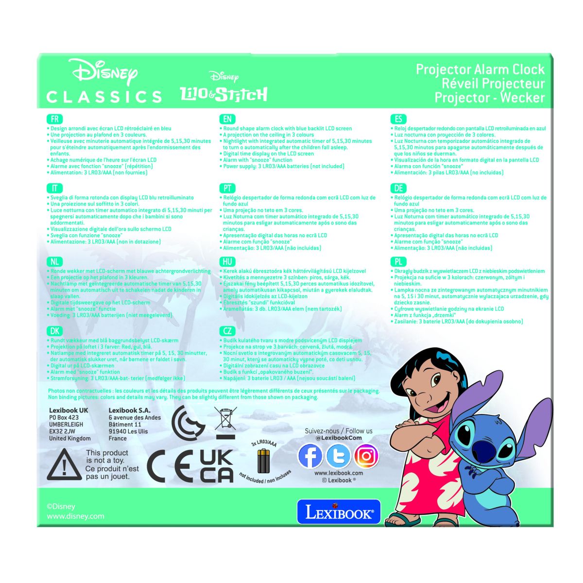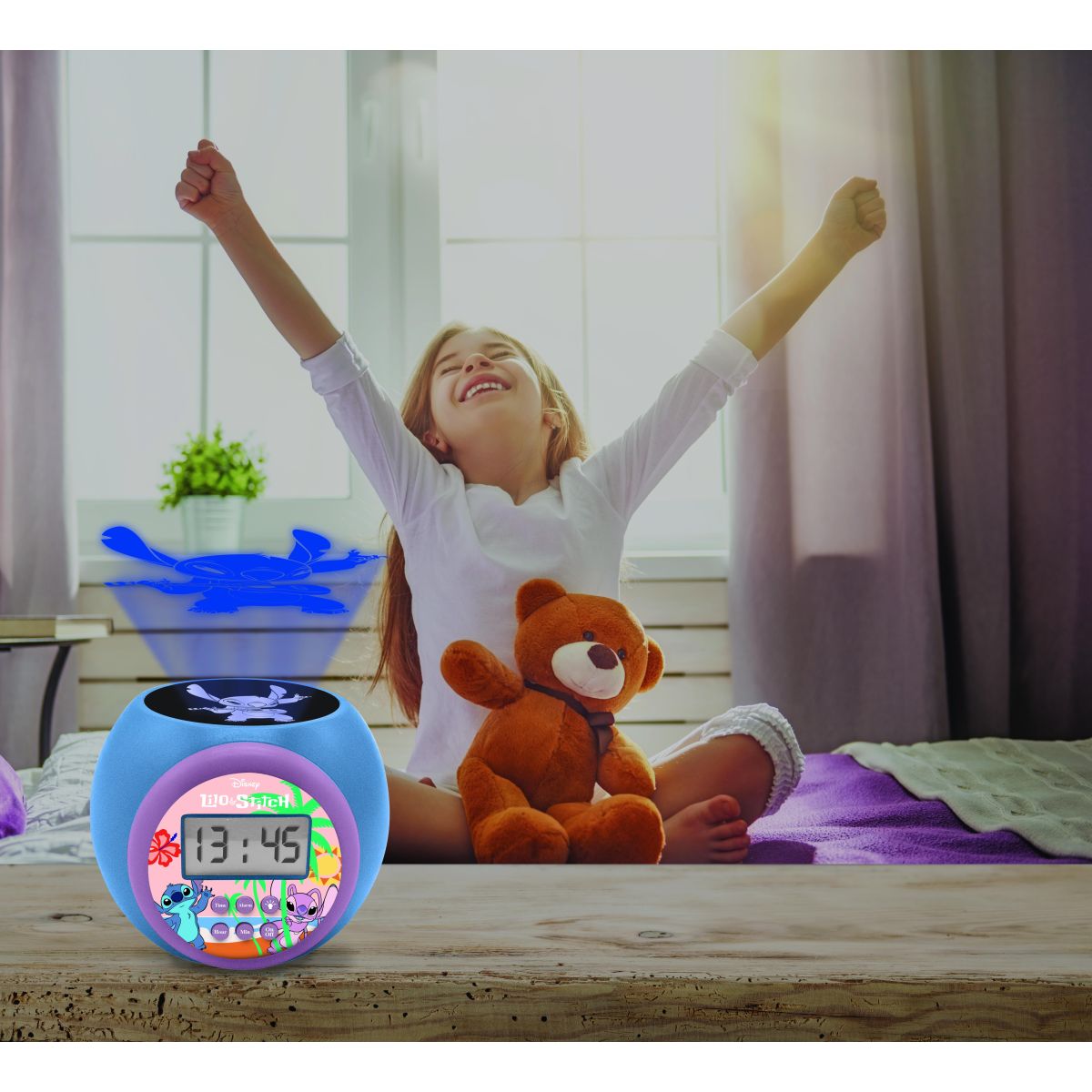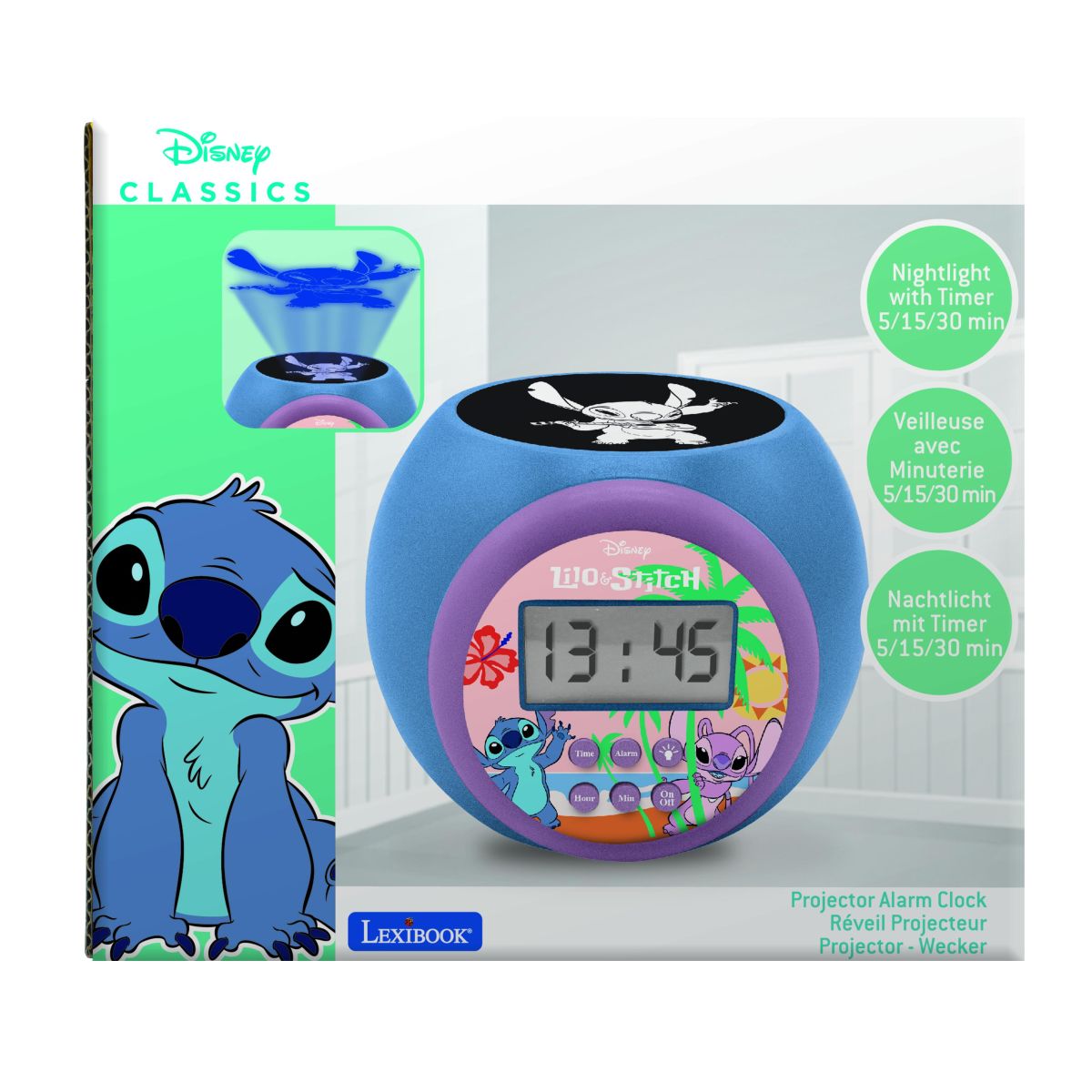 Ranní vstávání může být zábava s budíkem Lexibook Stitch se stropním projektorem! Díky snadnému ovládání a jasnému displeji si ho děti rychle oblíbí.