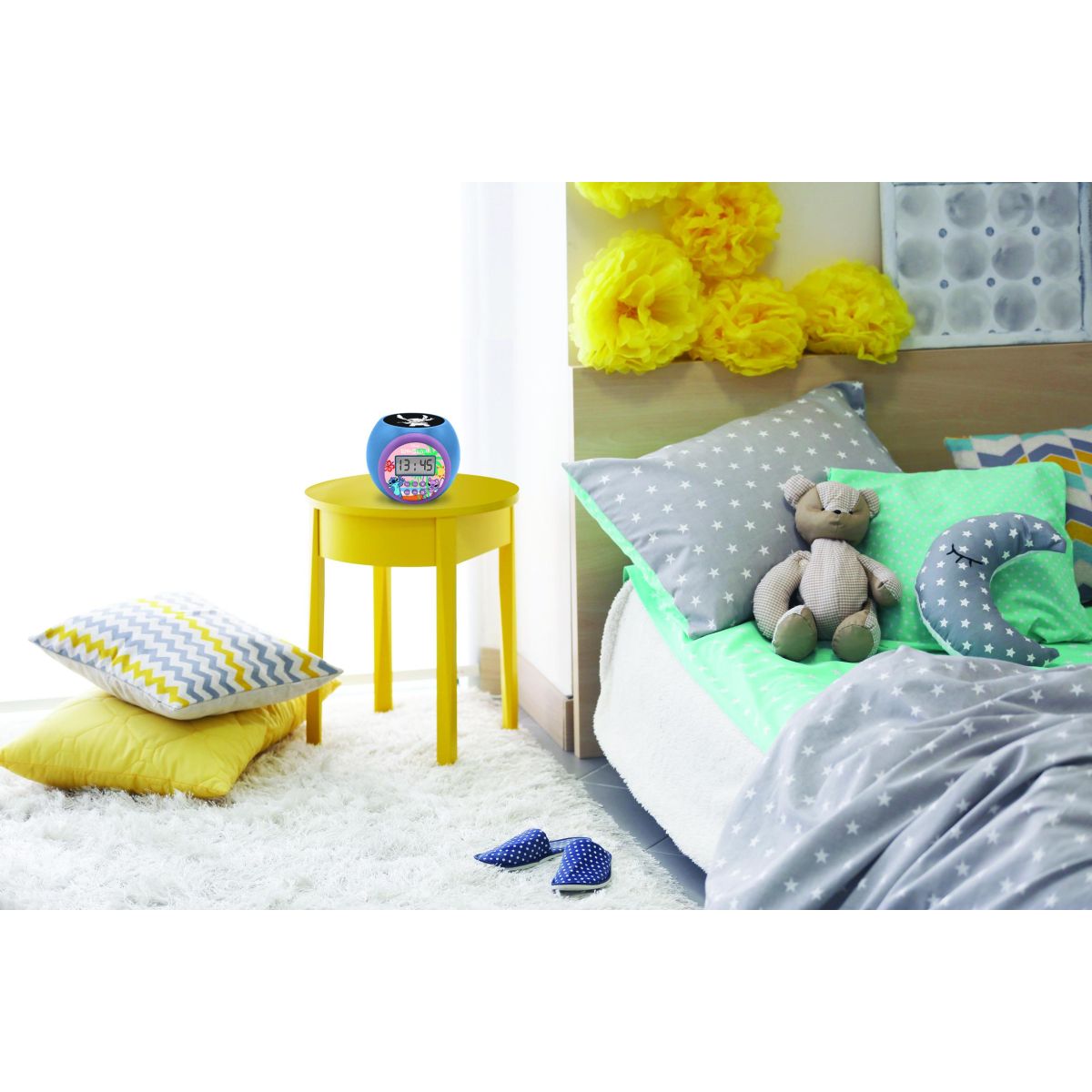Budík je odolný pro každodenní používání a jeho projekce na strop udělá z probouzení kouzelný okamžik pro celou rodinu. Ideální pomocník do dětského pokoje, který zpříjemní začátek dne.