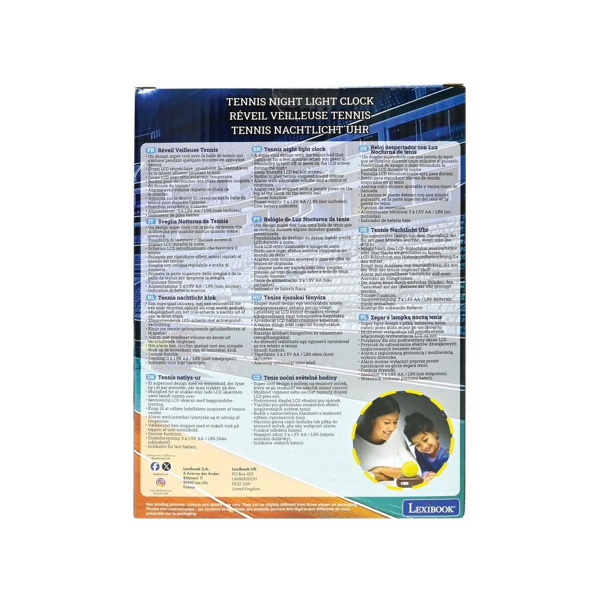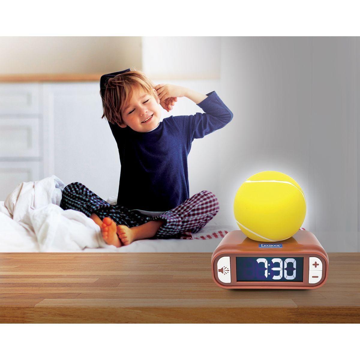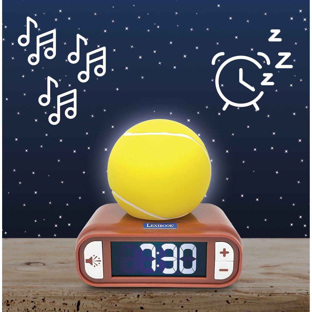 Budík Lexibook tenis se svítícím míčem zpříjemní dětem ranní vstávání a zároveň krásně ozdobí jejich pokojíček. Má přehledný displej a snadné ovládání, takže jej děti zvládnou používat samy.