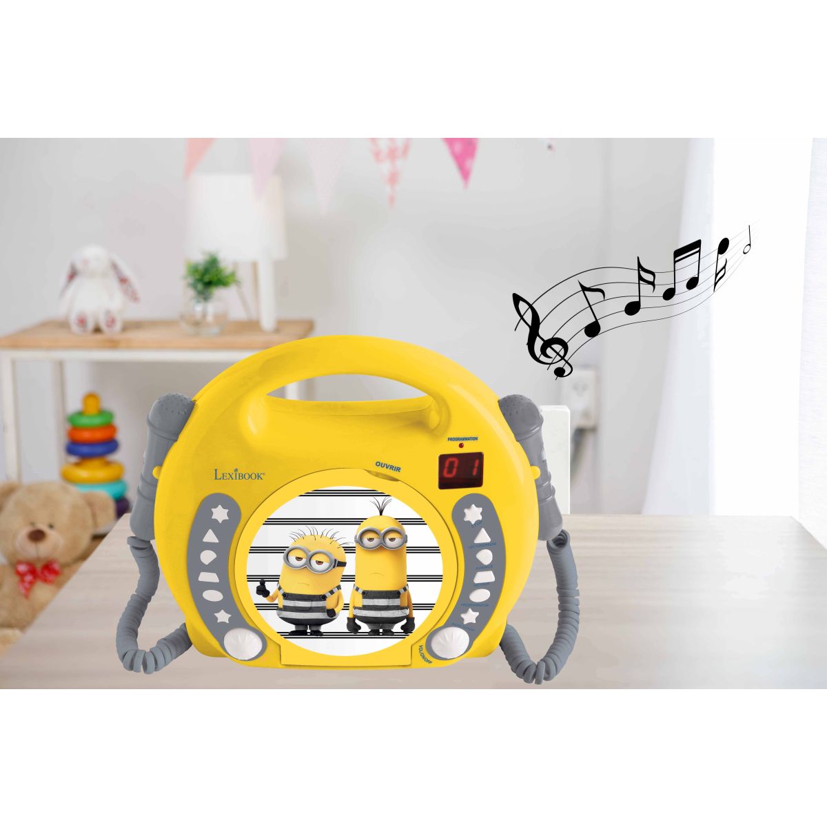 Lexibook CD přehrávač Mimoni se 2 mikrofony je ideální karaoke hračka pro děti od tří let. S tímto zařízením si děti doma i na oslavách mohou užít spoustu zpěvu a hudby.