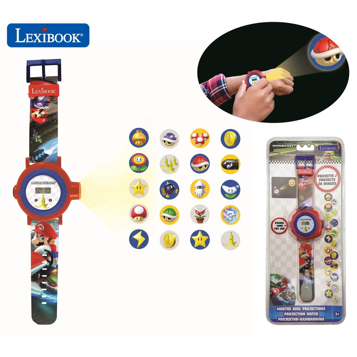 Hledáte hodinky, které pomohou vašim dětem naučit se čas a zároveň je budou bavit? Lexibook digitální promítací hodinky Mario s 20 obrázky jsou ideální volbou!