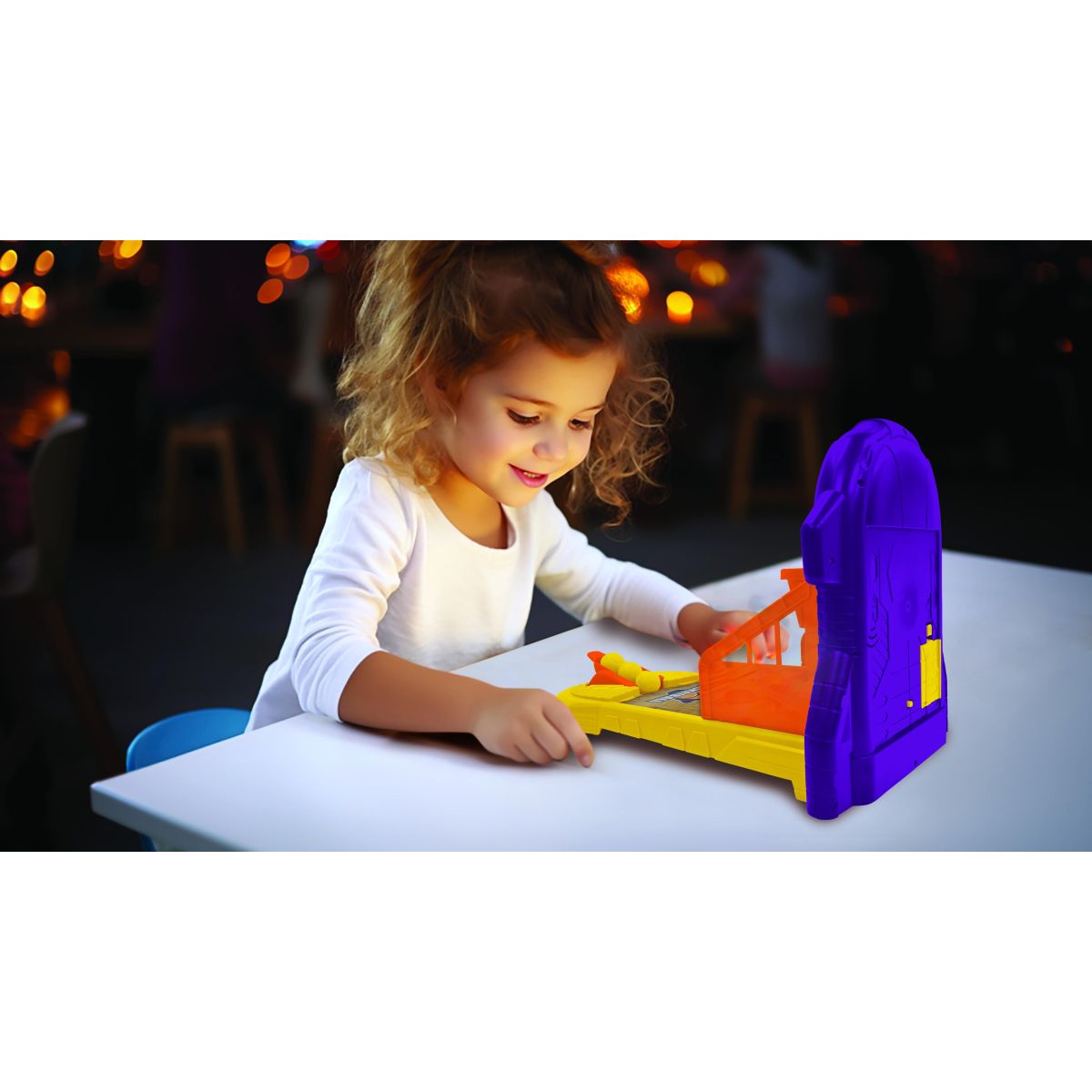 Moderní design přitahuje pozornost a tři baterie AA zajistí dlouhou výdrž hry (baterie nejsou součástí). Připravte se na hodiny aktivní zábavy plné soutěžení a radosti!