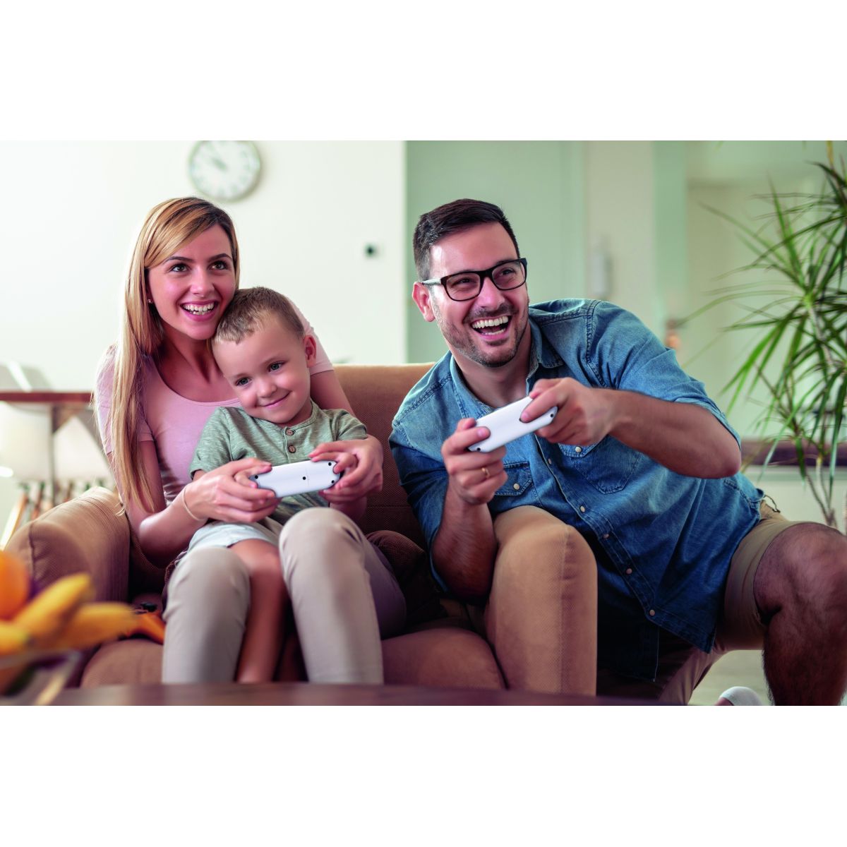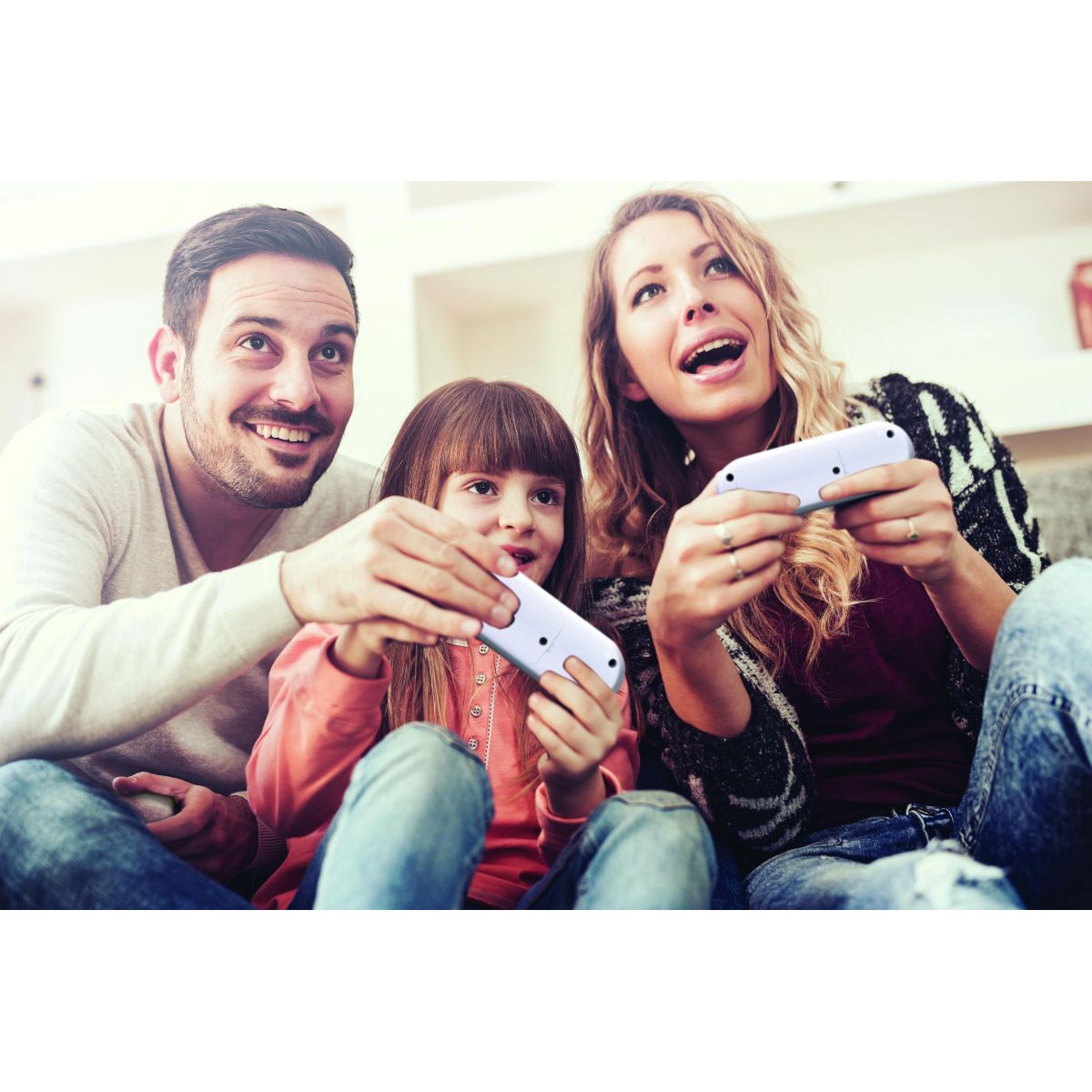 Konzole je navržena tak, aby byla odolná a bezpečná pro malé hráče, takže se nemusíte bát o jejich bezpečí. Snadno ji můžete vzít kamkoliv s sebou díky kompaktním rozměrům. Společné hraní nikdy nebylo jednodušší a zábavnější!