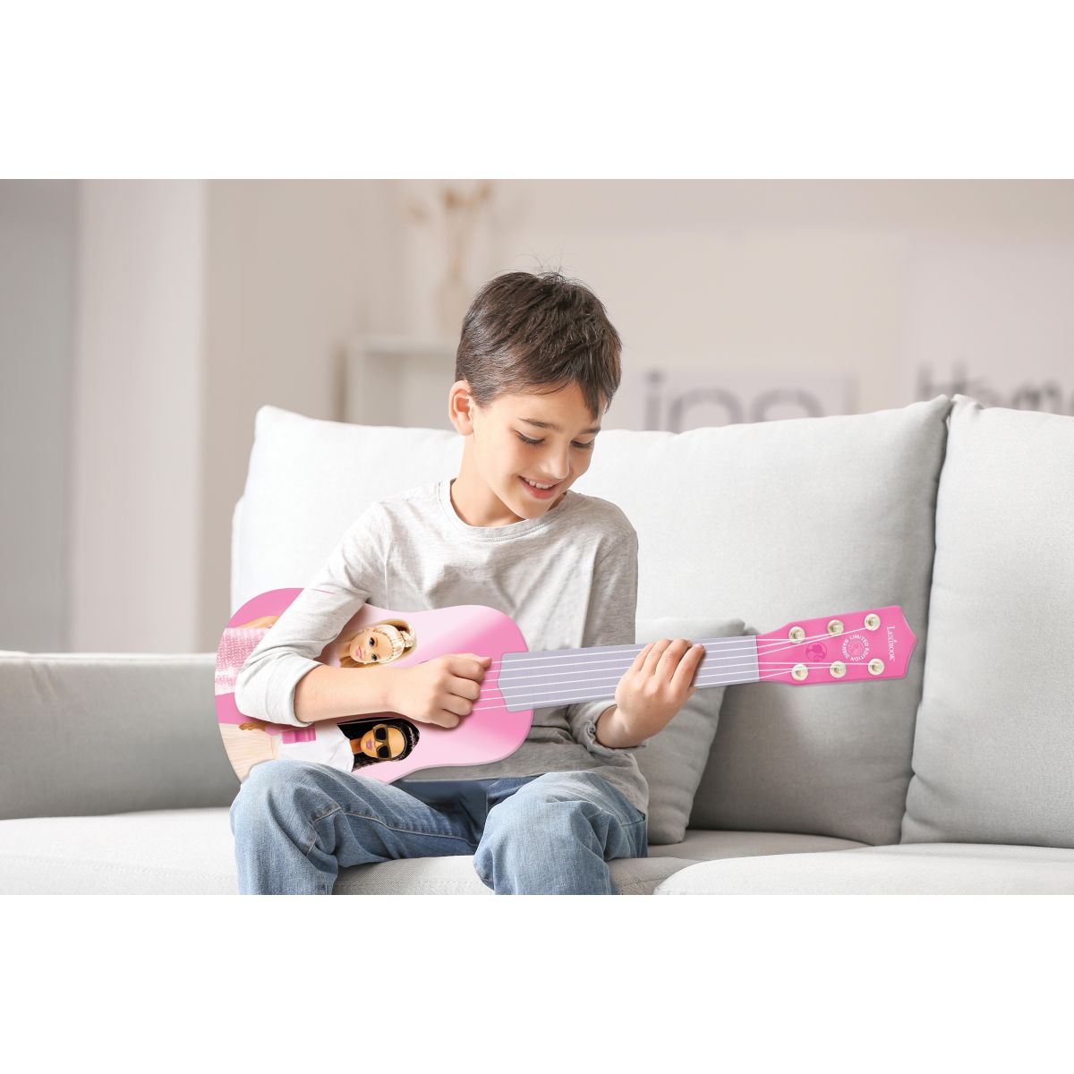 Malá hudebnice může začít své první kroky s kytarou Barbie od Lexibook! Tato barevná kytara o délce 53 cm je vyrobena tak, aby byla bezpečná a snadno ovladatelná pro děti od 3 let. Skvěle poslouží jak doma, tak na cestách, a přinese spoustu radosti z objevování hudby.