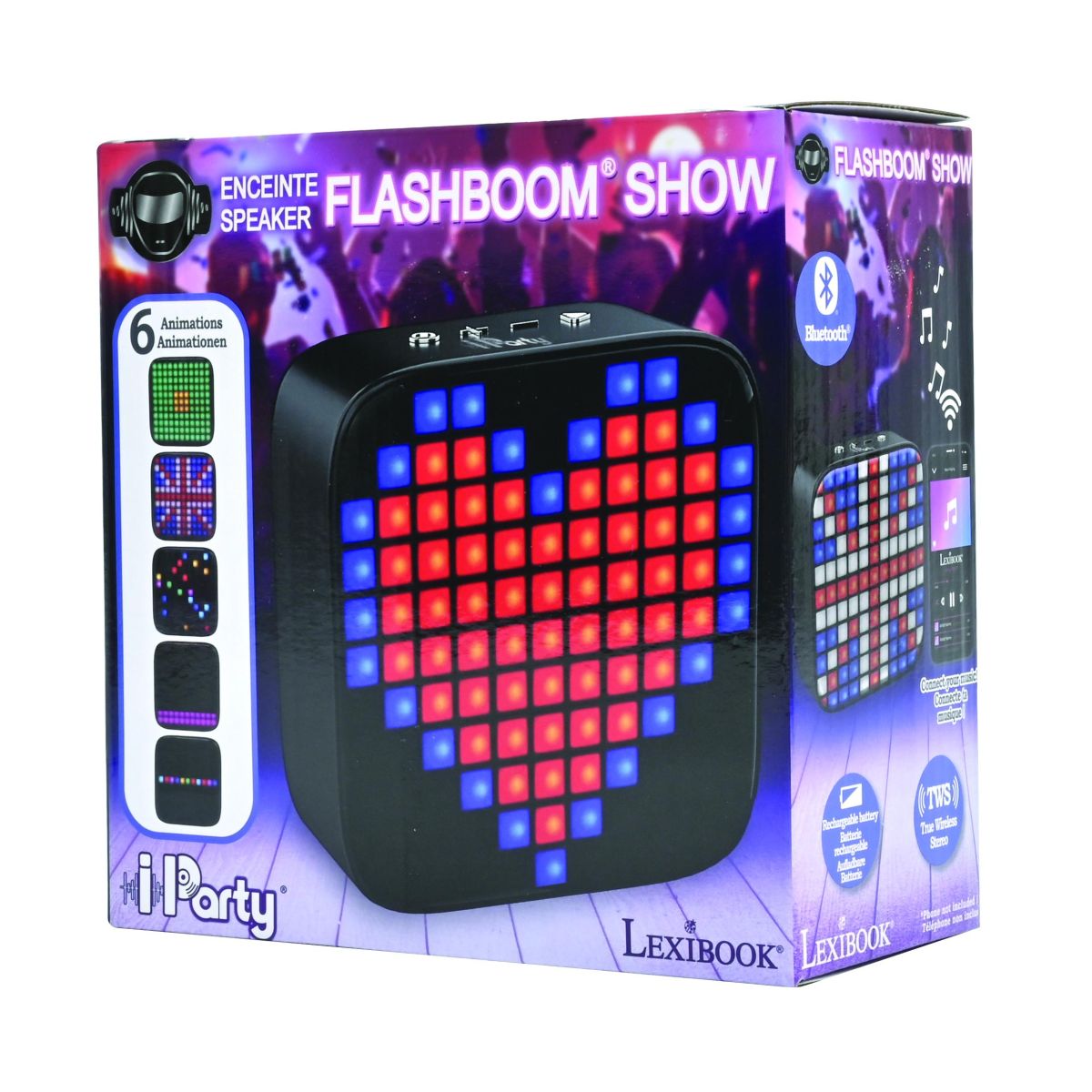 Lexibook reproduktor iParty Flashboom Show je ideální pro malé zpěváky, kteří si chtějí užít spoustu zábavy při domácím karaoke nebo na oslavách.