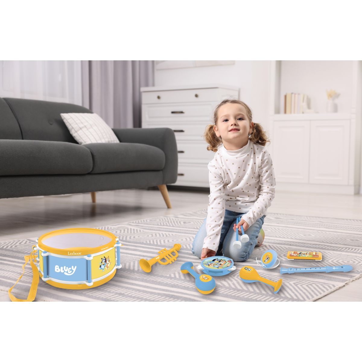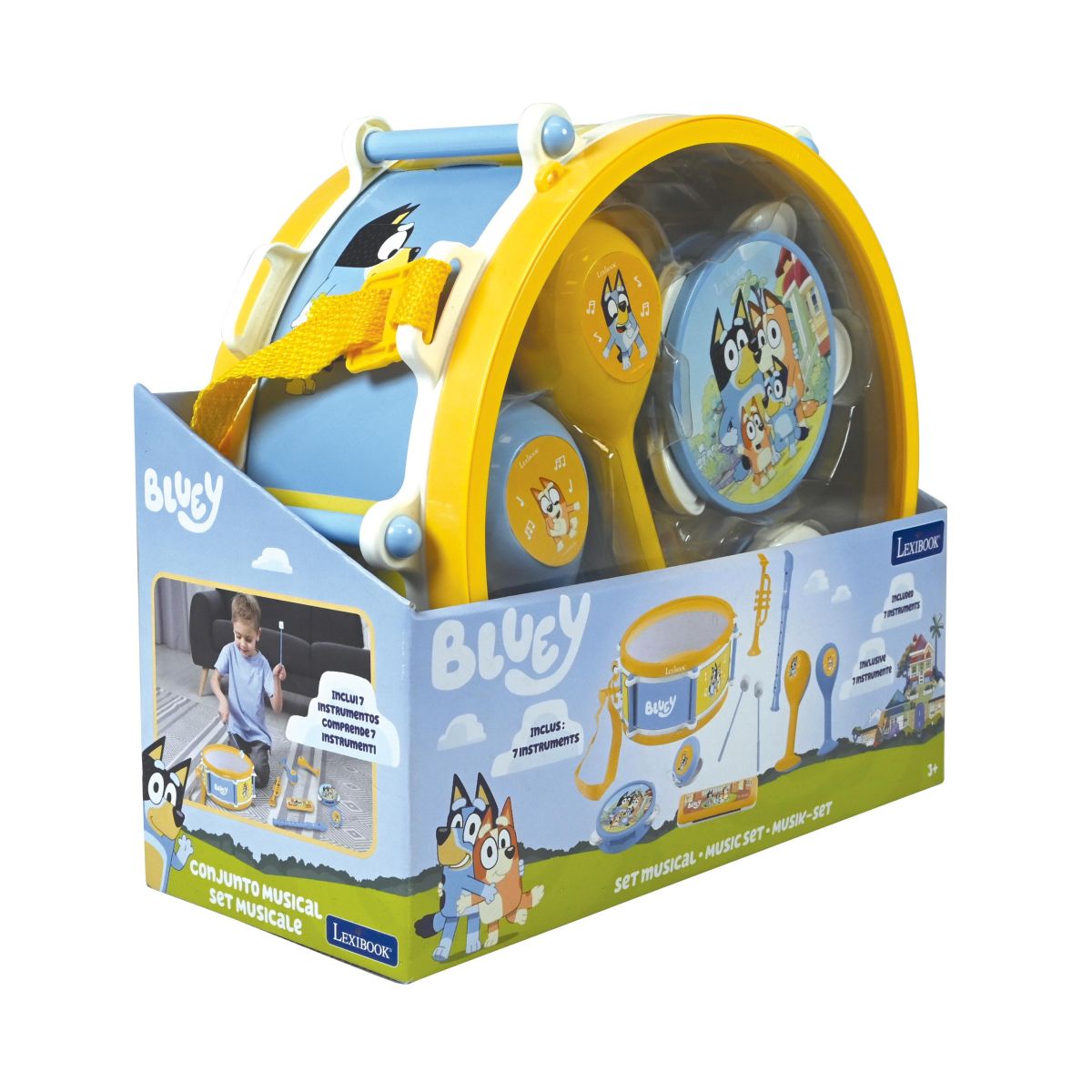 Sada sedmi hudebních nástrojů Bluey od Lexibooku přináší radost z hraní dětem už od tří let. Díky promyšlenému designu a bezpečnému provedení si malí muzikanti mohou vyzkoušet různé zvuky doma i na cestách.