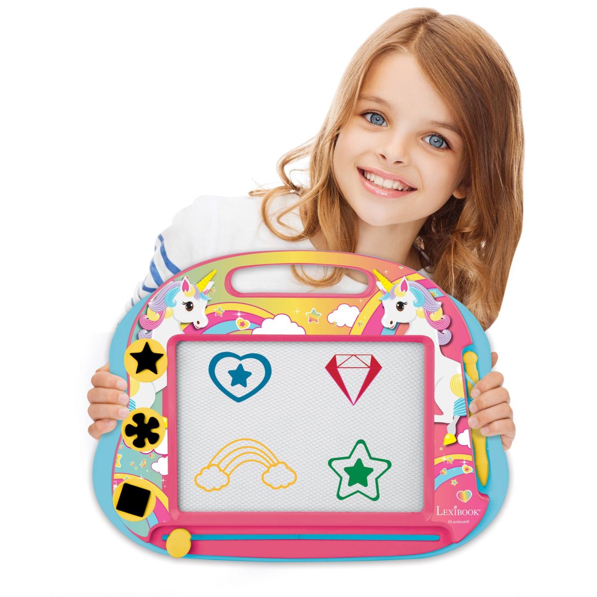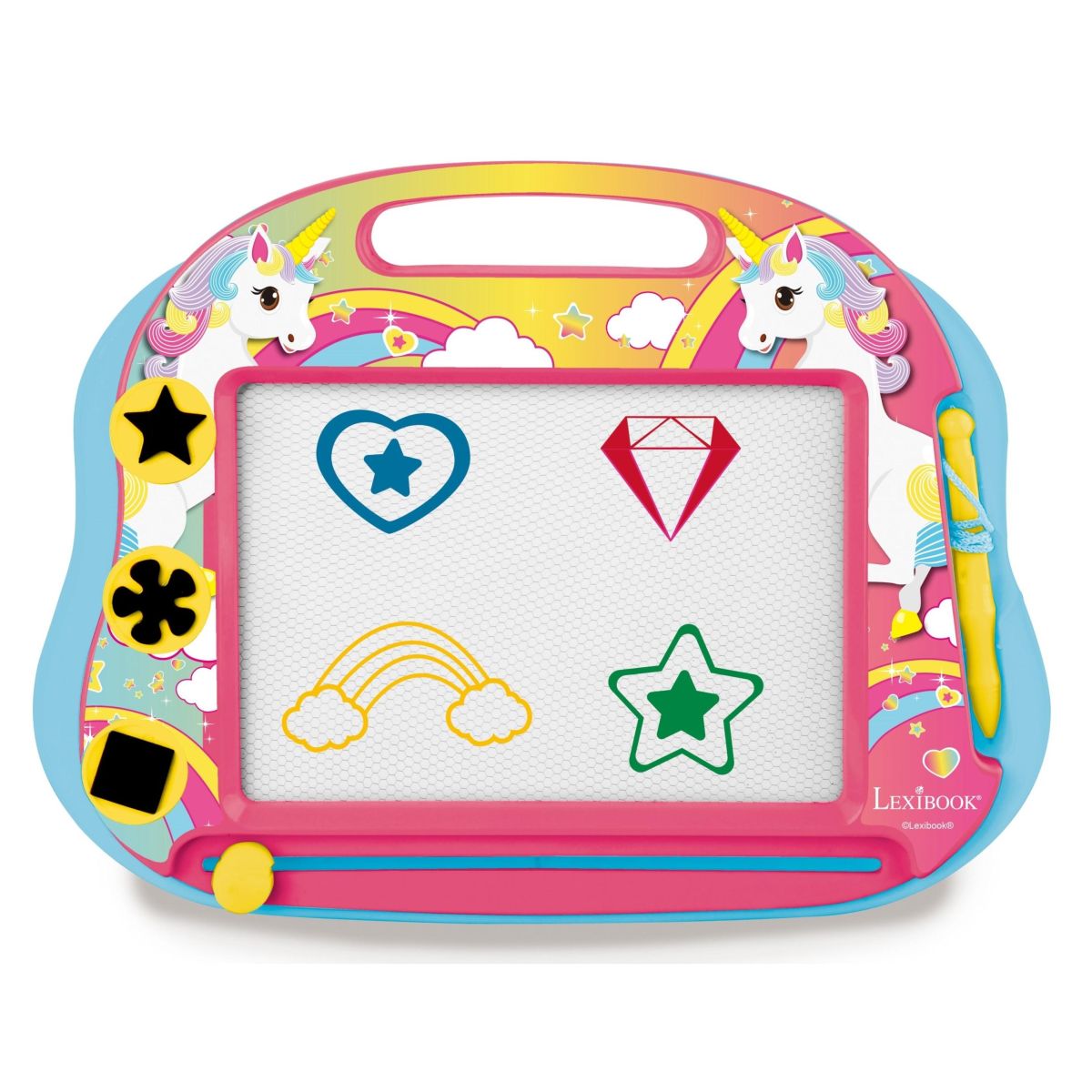 Tato vícebarevná kreslící tabulka Lexibook Jednorožec s razítky je skvělým pomocníkem pro malé umělce od tří let. Děti ji mohou používat doma nebo na cestách k malování a učení se novým věcem hravou formou.