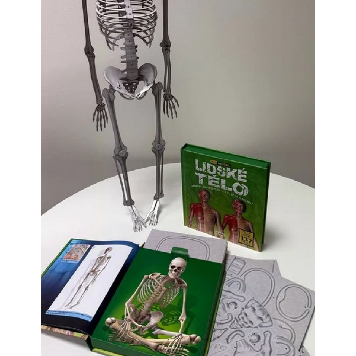Objev fascinující svět lidského těla s Lidské tělo – 3D Modelem! Tato interaktivní encyklopedie plná barevných ilustrací přináší informace o kostech, svalech, mozku, dýchání a dalších částech lidského těla. Součástí je 137 kartonových dílků pro stavbu 3D modelu kostry o délce 80 cm, kterou lze sestavit bez nůžek nebo lepidla. Perfektní kombinace učení a zábavy, která rozvíjí manuální dovednosti, logické myšlení a zájem o vědu. Stavba modelu je doporučena dětem od 10 let, případně s pomocí dospělých i dříve.