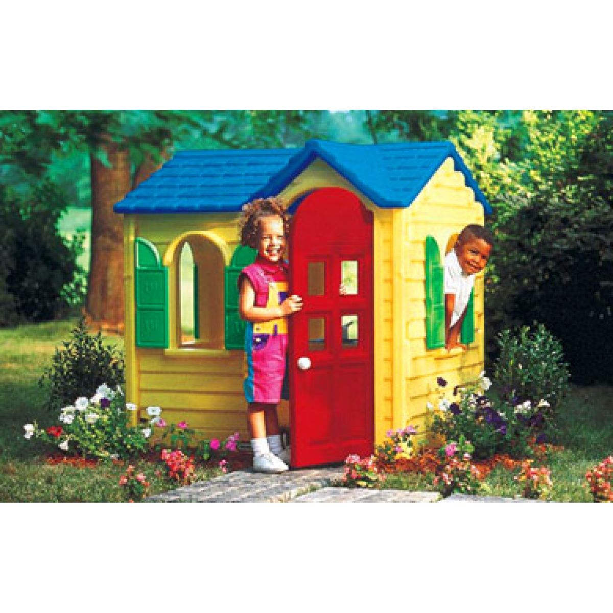 Little Tikes 4797 - Venkovské sídlo. Venkovské sídlo v klasickém venkovském stylu má kazetové dveře a okna se zavíratelnými okenicemi. Ve vnitřním vybavení domečku je dvouploténkový vařič s cvakajícími tlačítky, hrací telefon a dřez s otočným kohoutkem.