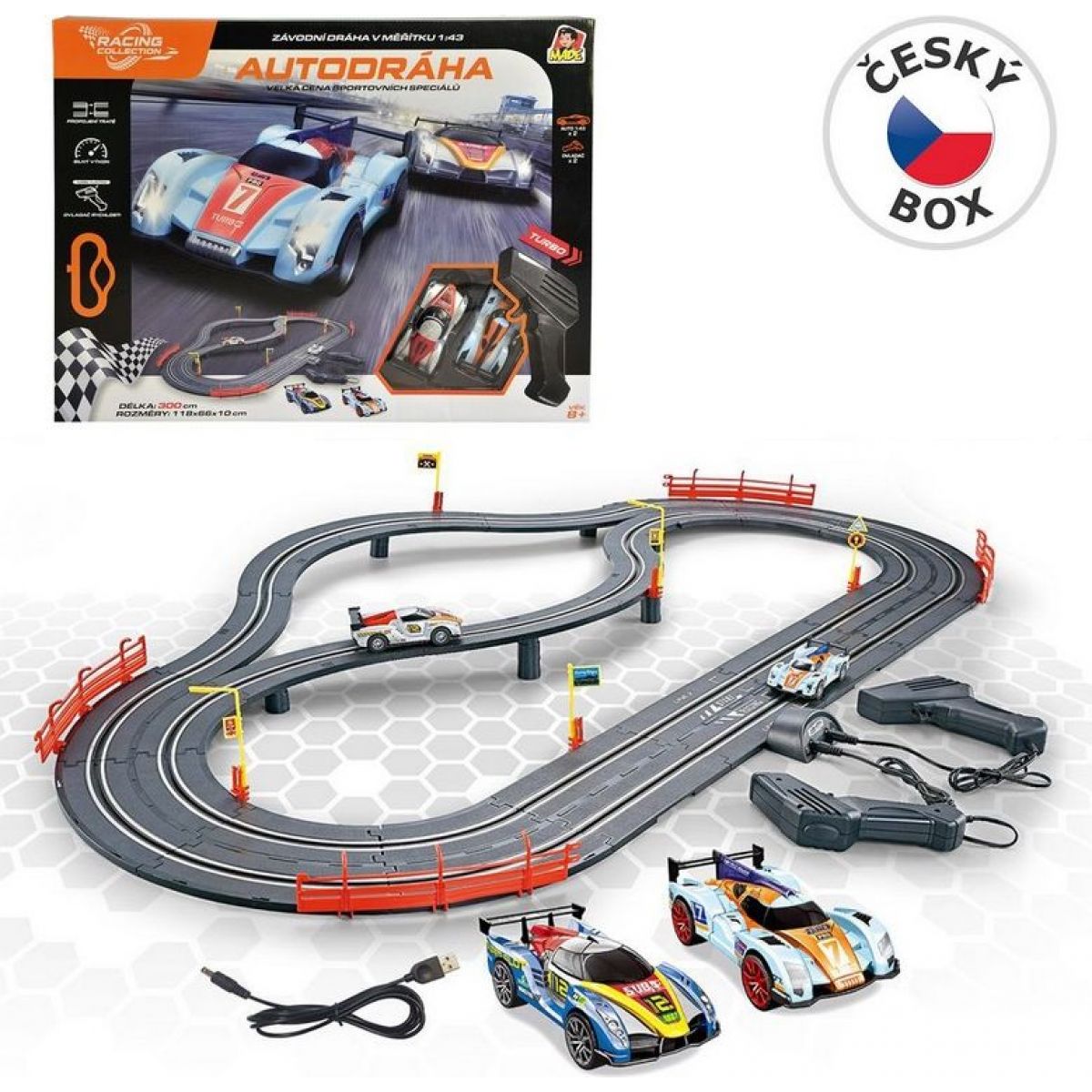 Autodráha z produktové řady Racing Collection nabízí dětem okruh pro střetnutí 2 závodních vozidel.