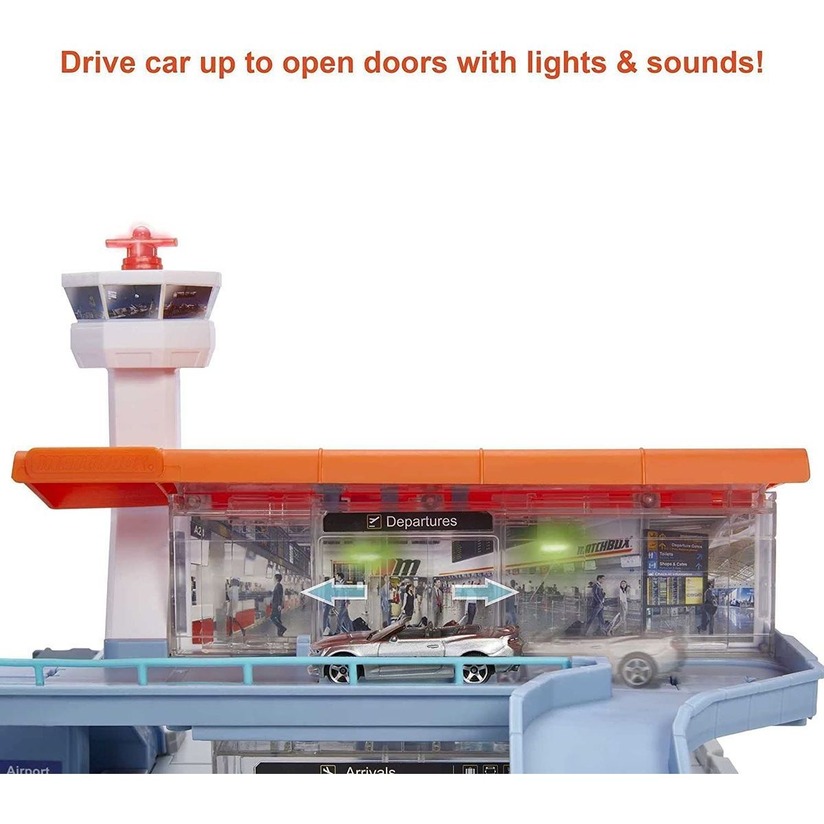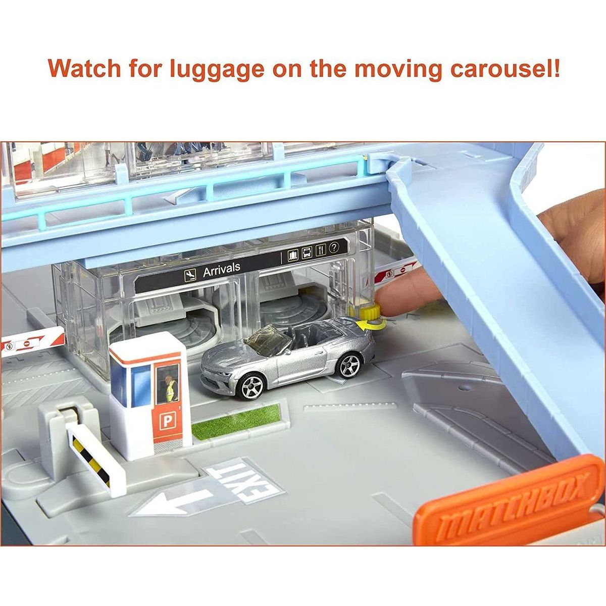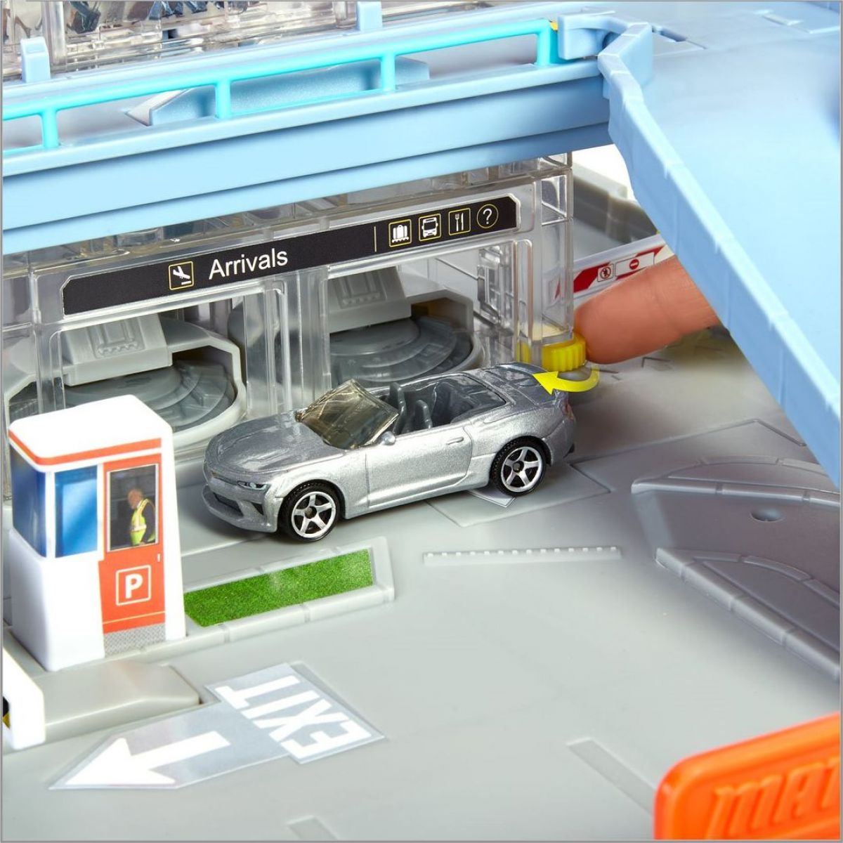 K dispozici budou mít letištní plochu vybavenou dráhami pro letadla, navigační věž i budovu pro odbavení pasažérů. Letiště je propracované do detailů. Herní sada má vytvořený propojovací systém s případnými dalšími sadami Matchbox nebo Hot Wheels, které lze zakoupit samostatně.