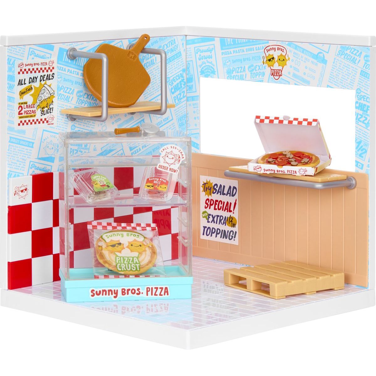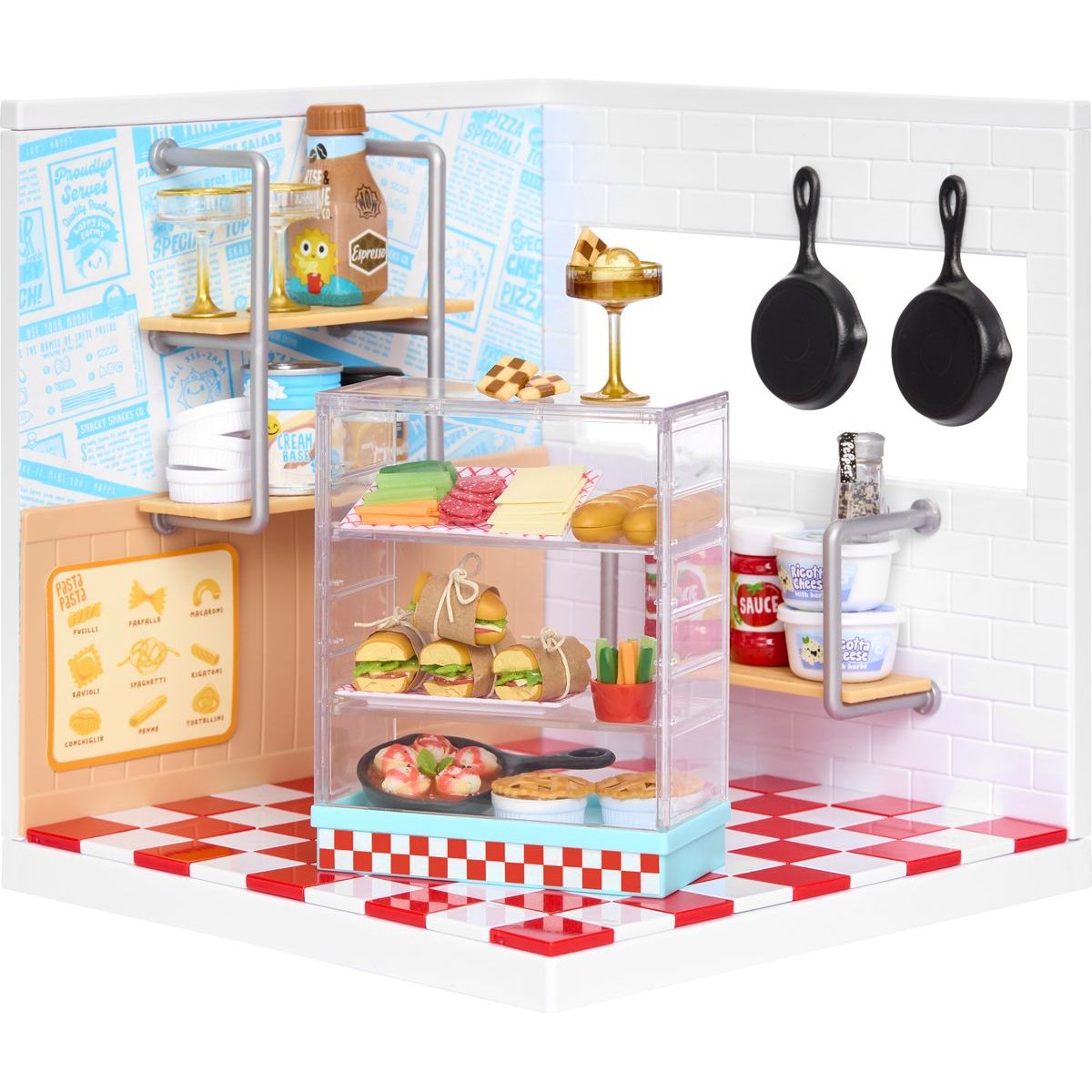 S MGA's Miniverse – Make it Mini Místnosti můžeš vytvořit svůj vlastní svět plný miniatur! Postav si pizzerii s pomocí podlahy, stěn a tapet, které jsou součástí balení. Stačí jen složit díly, připevnit panely a rozestavit police podle svého vkusu. Tento set je skvělý pro všechny malé tvůrce od 8 let, kteří rádi staví a vymýšlejí příběhy svých sběratelských figurek. Navíc můžeš kombinovat s Hello Kitty sadou pro ještě větší zábavu.