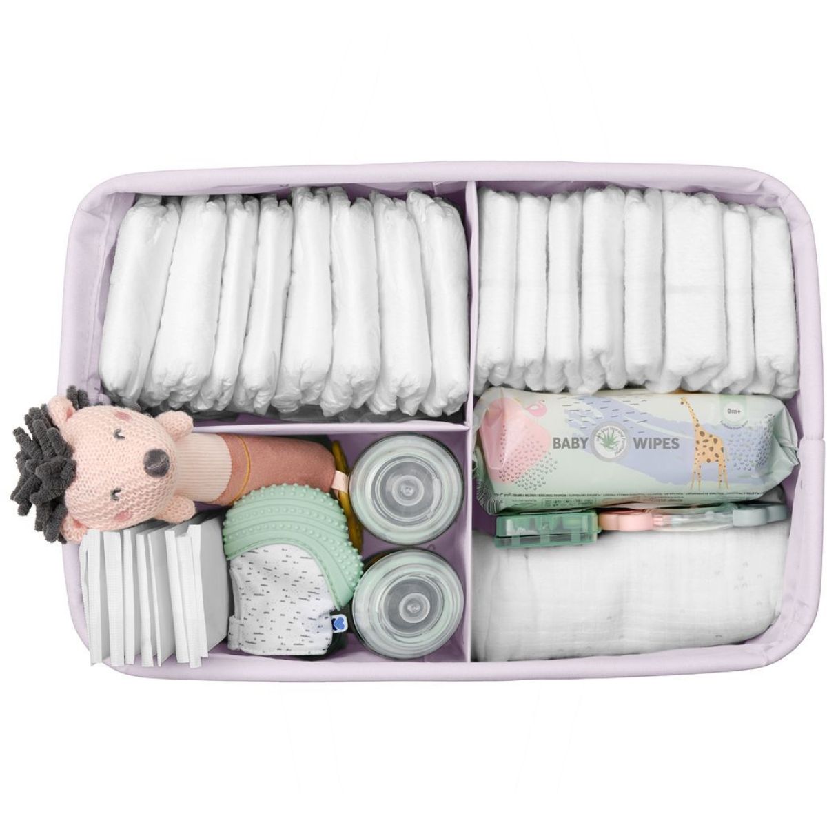 Zažijte pohodlí s organizérem na pleny Hedge-hugs, který pomáhá udržet všechny potřeby pro miminko přehledně uspořádané. Je vyrobený z měkkého textilu a má vnitřní přehrádky i odnímatelnou přepážku pro lepší organizaci. Díky držadlům ho snadno přenesete kamkoliv potřebujete. Když ho nepoužíváte, složíte ho do plochého tvaru. Má rozměry 42 x 27 x 17 cm a je vyroben z 100% polyesteru.