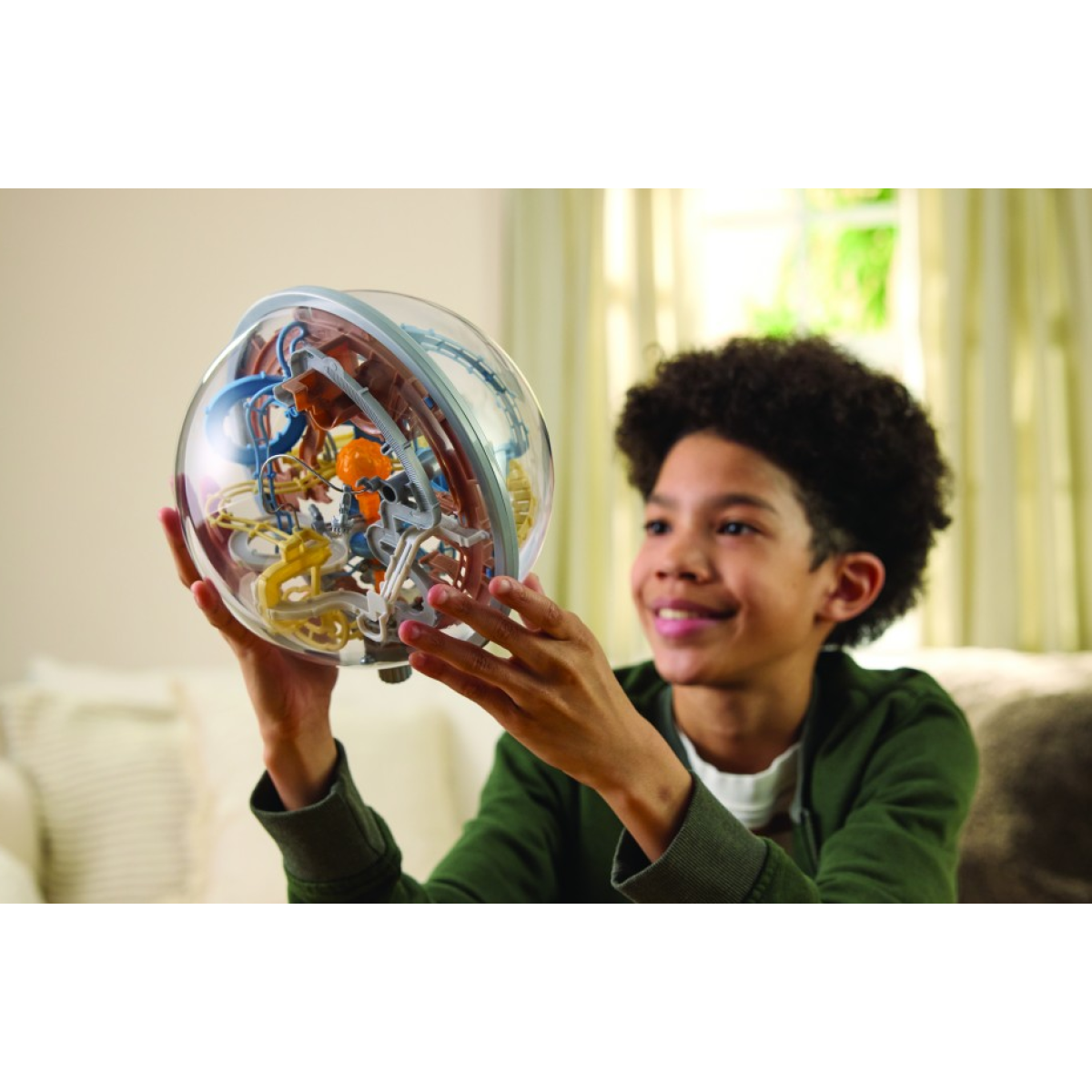 Uvnitř průhledné koule na tebe čeká složitý labyrint, ve kterém musíš dovést kuličku až do cíle – jen díky pevným nervům a šikovnému otáčení.