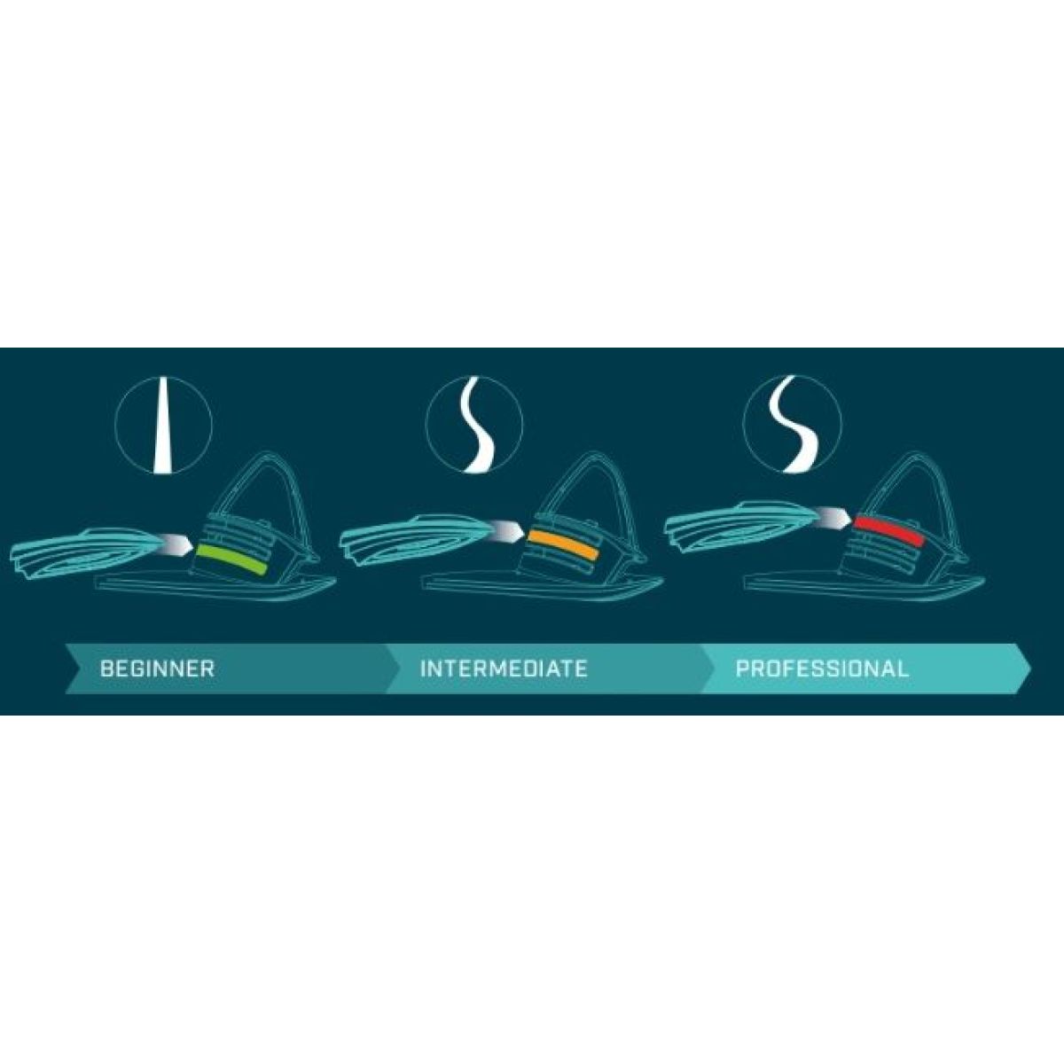 Pomocí přenášení váhy těla je možné docílit carvingových oblouků. Brzdí se nohama.