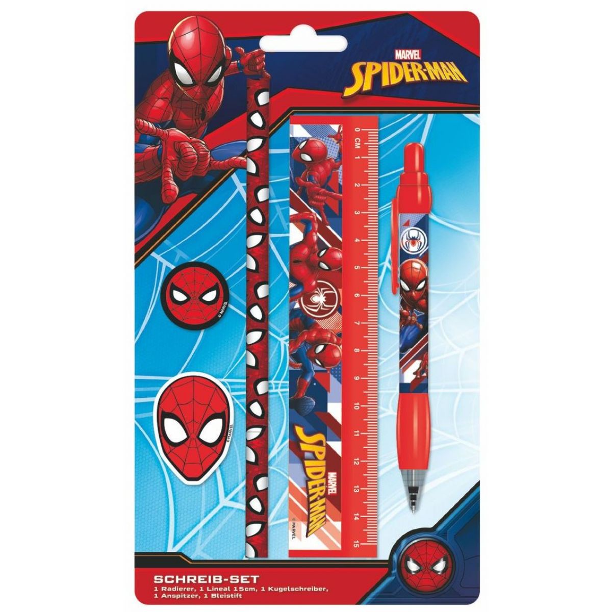 Školní set pomůcek každodenního využití je vyrobený v licenci Spiderman.