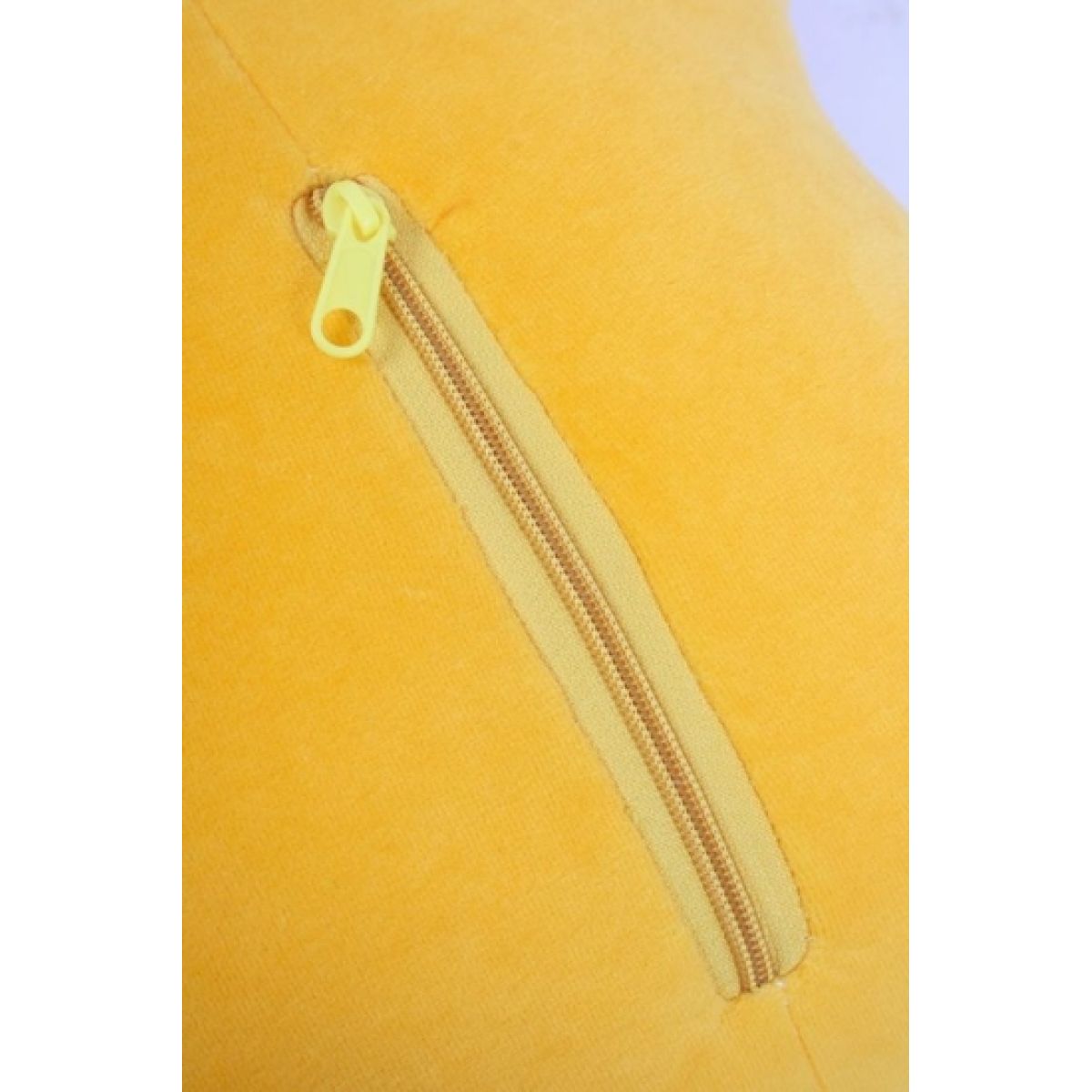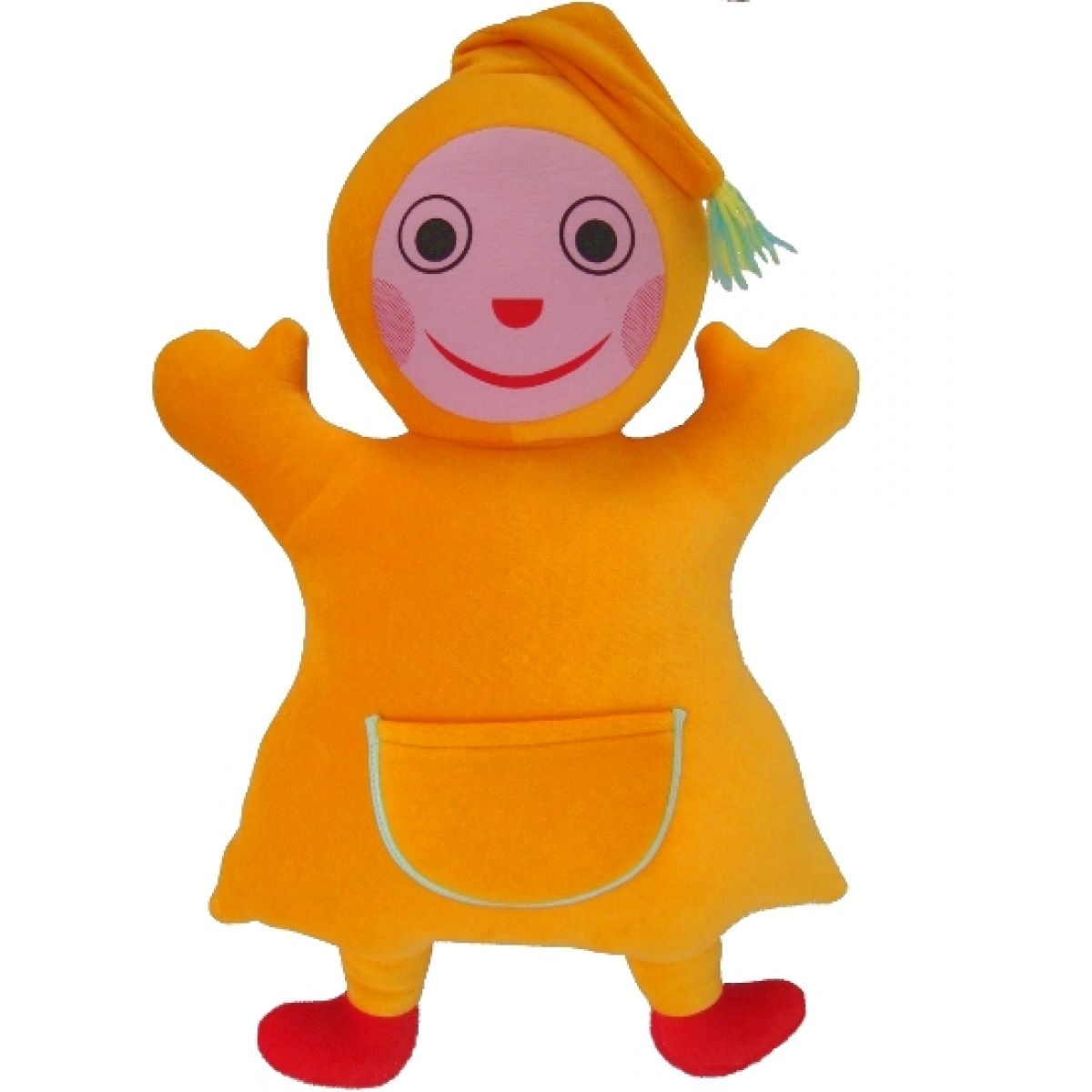 Polštářek je vyroben z postřiženého froté, vycpávkou je pružné polyesterové vlákno. Na zádech je vytvořen prostor pro pyžamko, který se zapíná na zip.
