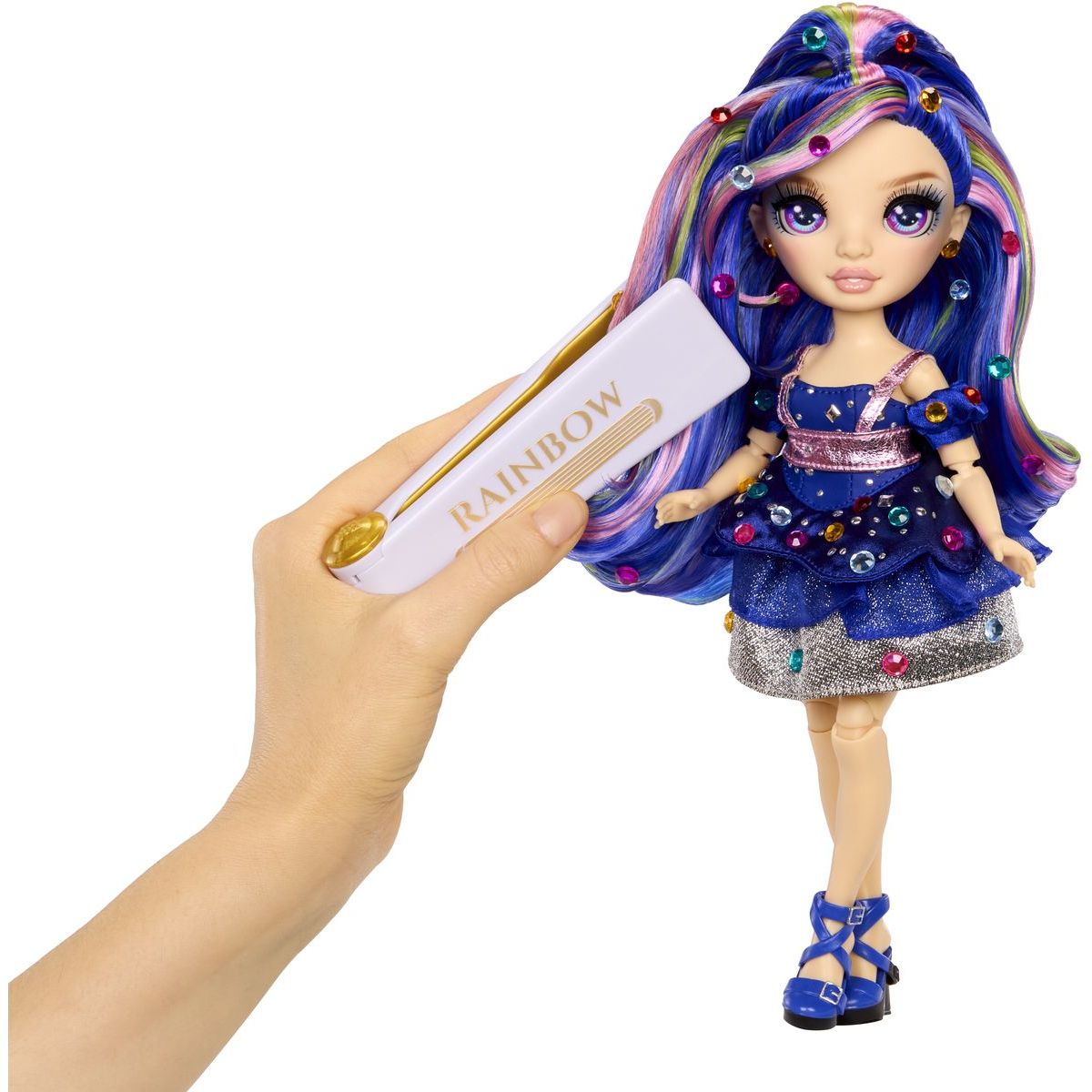 Genevieve Bleue z Rainbow High Be Dazzling Fashion je panenka plná barev a třpytek, která nadchne malé módní nadšence od 4 let. Díky pohyblivým kloubům a dlouhým česatelným vlasům si děti mohou hrát na styling jako opravdové návrhářky. V balení najdete také duhové kamínky a jednoduchý krimpovací nástroj, se kterým ozdobíte vlasy i oblečení panenky i sami sebe. Tato panenka podporuje kreativitu a radost z vlastního stylu!