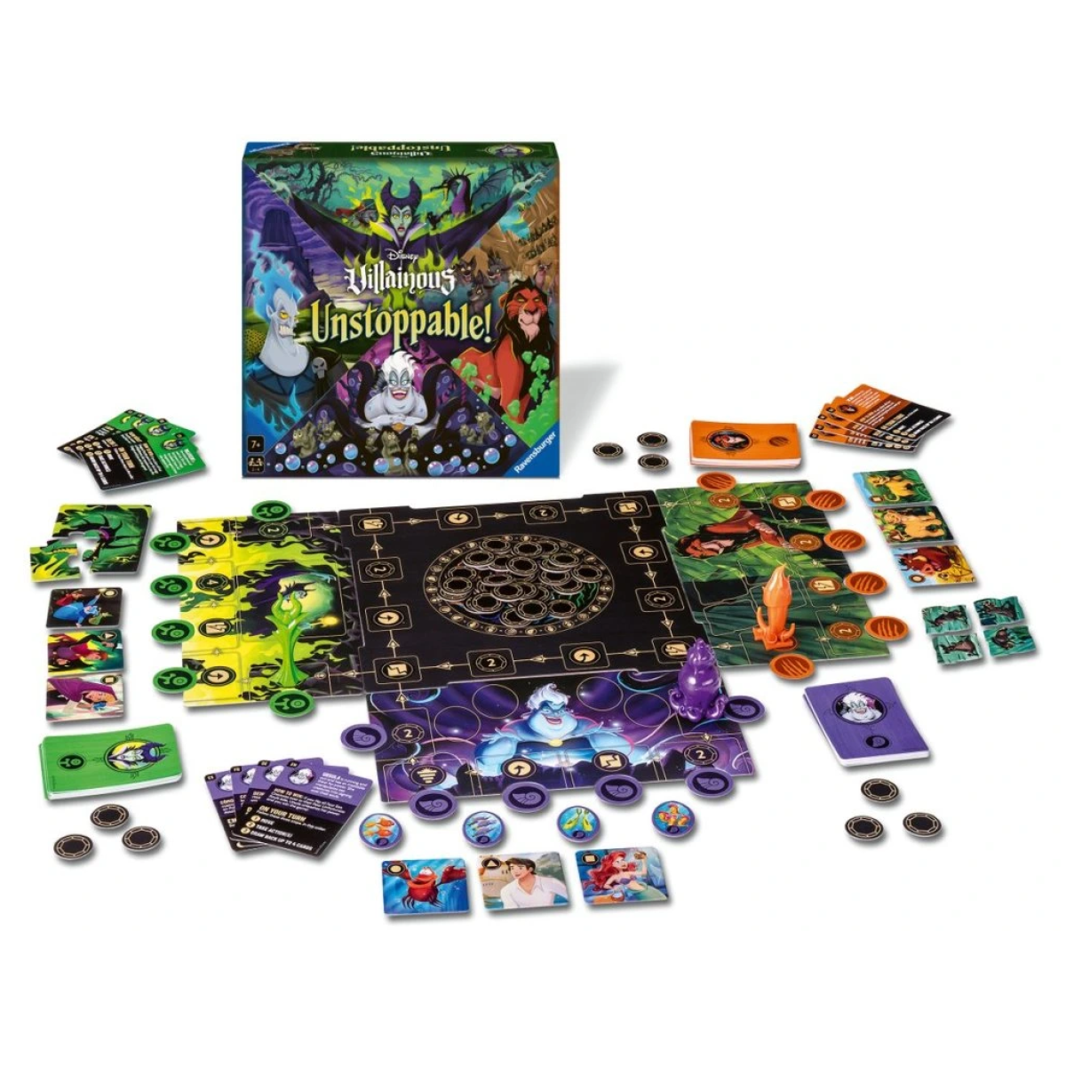 Ravensburger Disney Villainous: Unstoppable vás zavede do světa legendárních disneyovských padouchů, kde se ambice měří intrikami a vítězství chladnokrevnou strategií. Zloba, Uršula, Hádés i Scar mají každý svou vlastní cestu k triumfu – s originálními schopnostmi, herními balíčky a cíli, které prověří váš taktický úsudek i schopnost překazit plány soupeřům. Přístupná pravidla a dynamická hratelnost dělají z této hry skvělý způsob, jak se ponořit do série Villainous a objevit temnou stránku Disney světa s celou rodinou.